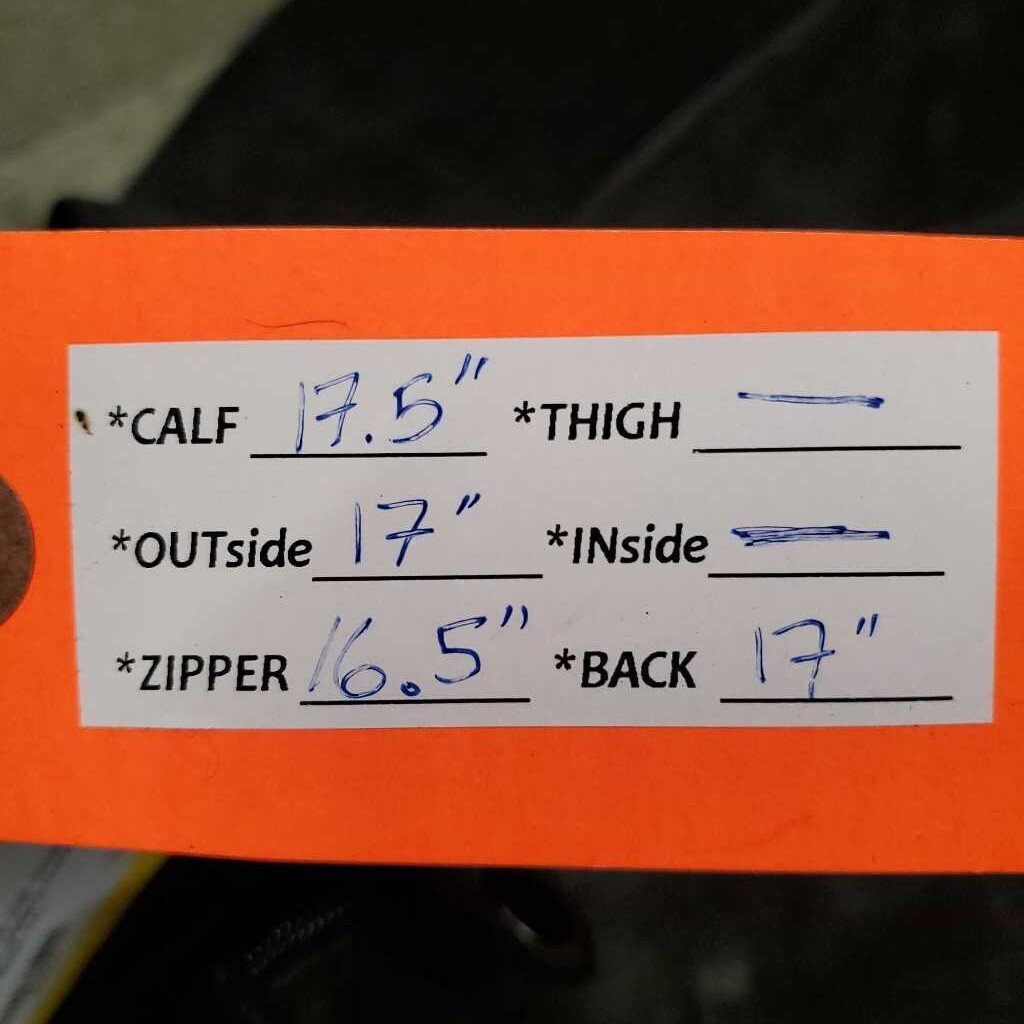 Calf: 17.5", Outside: 17", Zipper: 16.5"