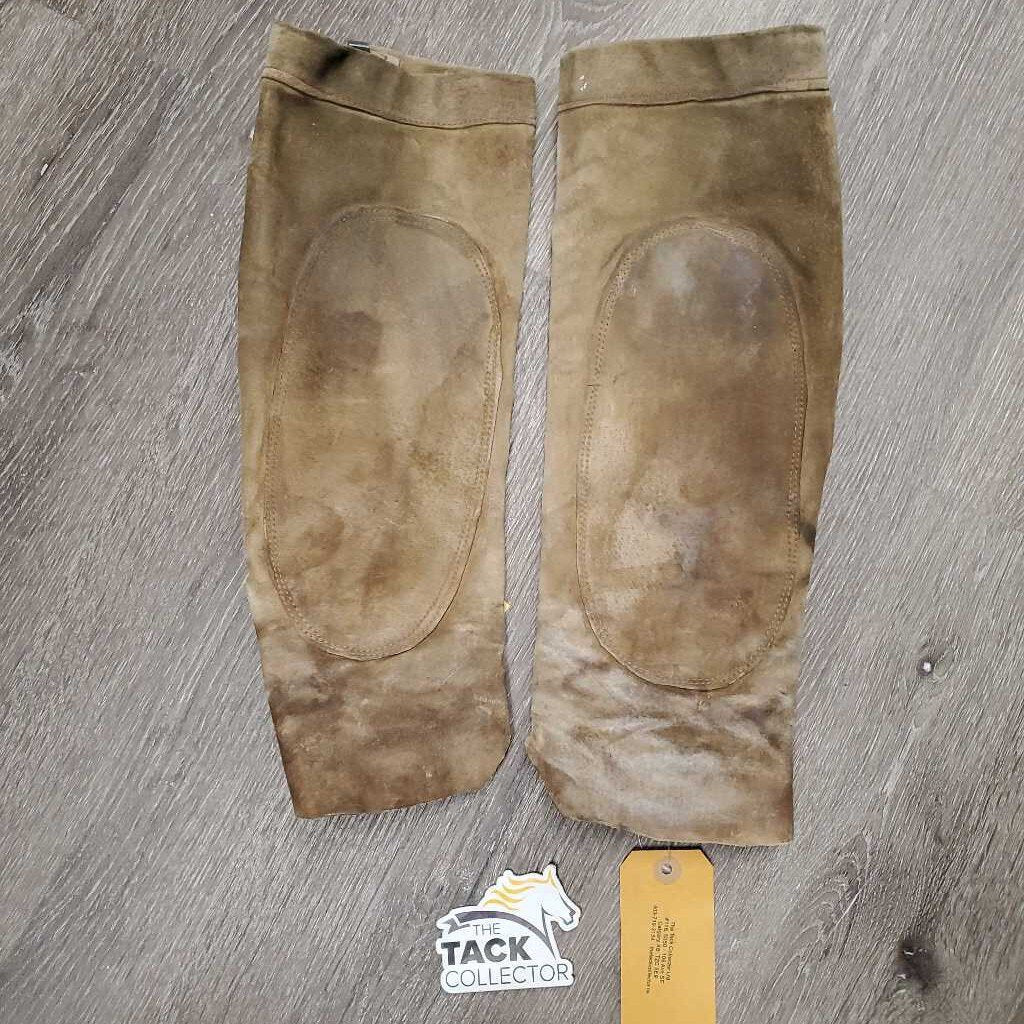 Pr Thin Suede Half Chaps *fair, older, discolored, stains, rubs, stiff