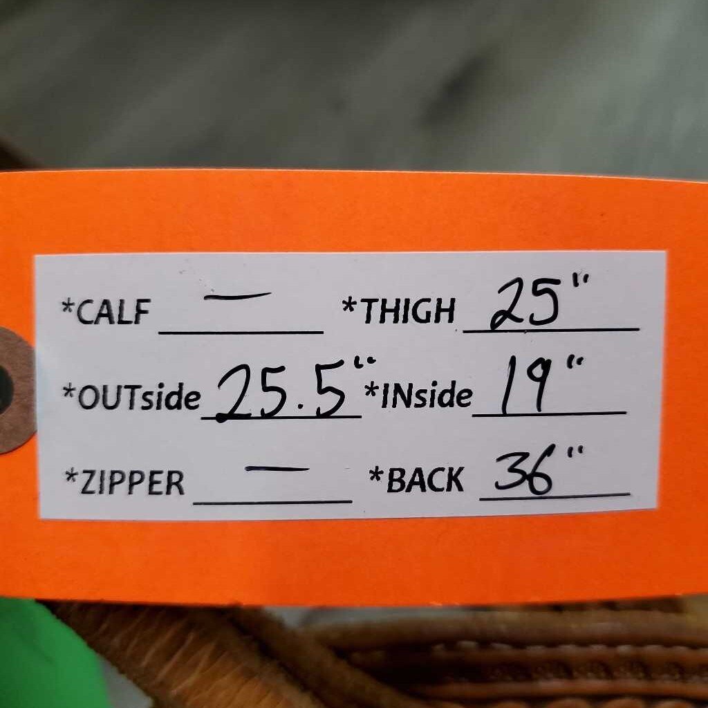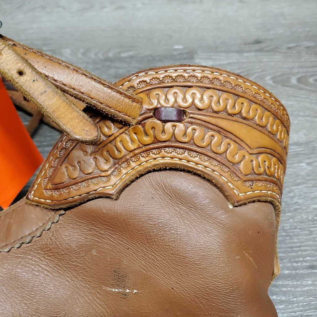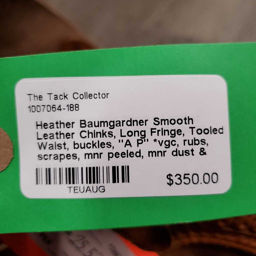 Smooth Leather Chinks, Long Fringe, Tooled Waist, buckles, "A P" *vgc, rubs, scrapes, mnr peeled, mnr dust & inner stains