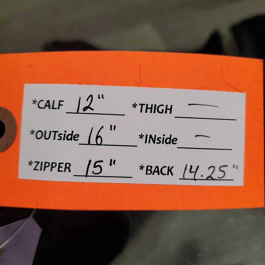 Calf 12", Outside 16", Zipper 15", Back 14.25"
