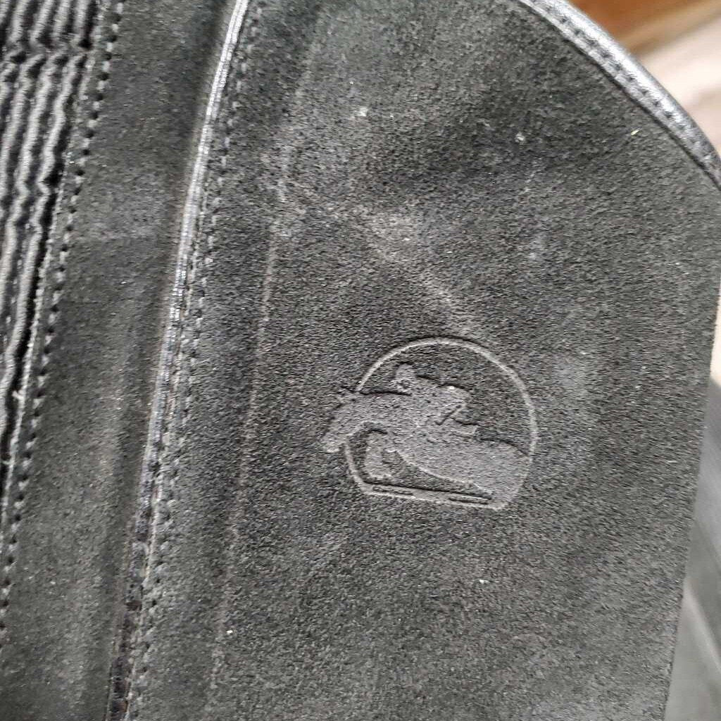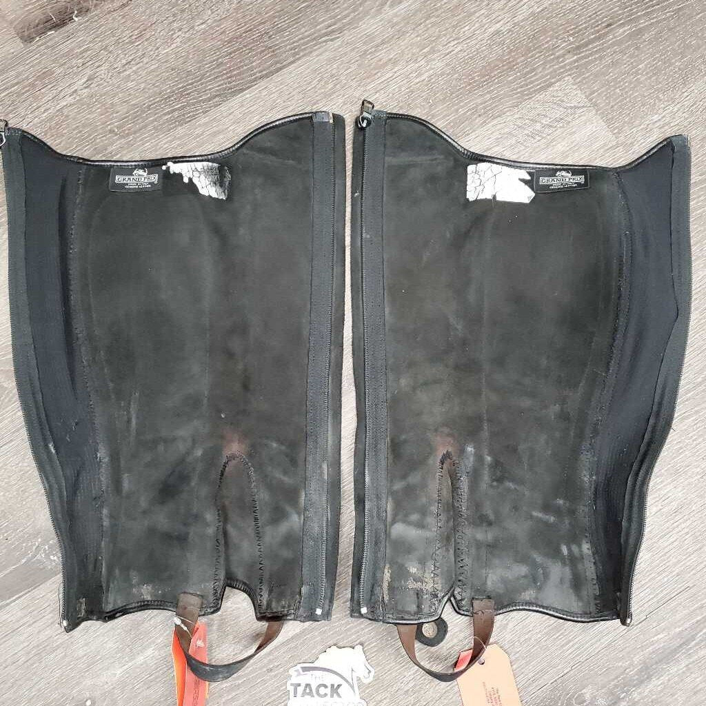 Suede Half Chaps *gc/fair, older, rubs, undone stitching, faded, stains, pilly, gunky inside