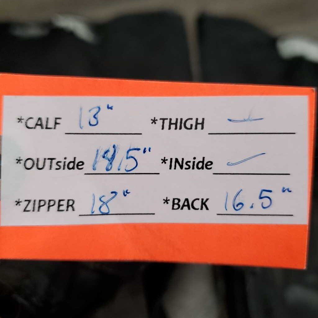 Calf 13", Out 18.5", Zip 18", Back: 16.5"