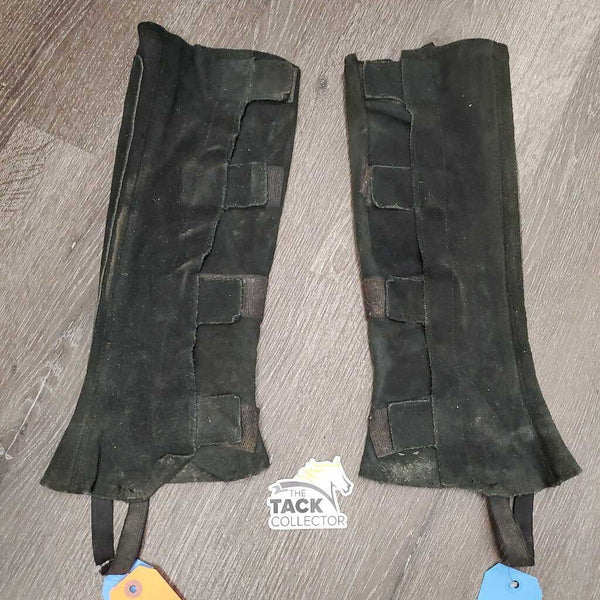 JUNIORS Suede Half Chaps *gc, rubs, older, dirt, edge rubs & pills, stains, stuck hay Size: 14 *Lg $25.00