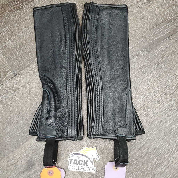Pr Leather Half Chaps, Back Zips *gc, clean, mnr dirt?residue, mnr stretched top elastic, lining: pulled & curled, rubs, sm holes Ego 7 Size: Small