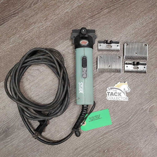 Body Clippers, 2 prs blades, box *TURNS ON - Motor Sounds OK, NEEDS REPAIR: NEW HEAD?FEET *gc/fair, hair, dirt, v.hairy filter, loose head, grooved feet Lister Star $145.00