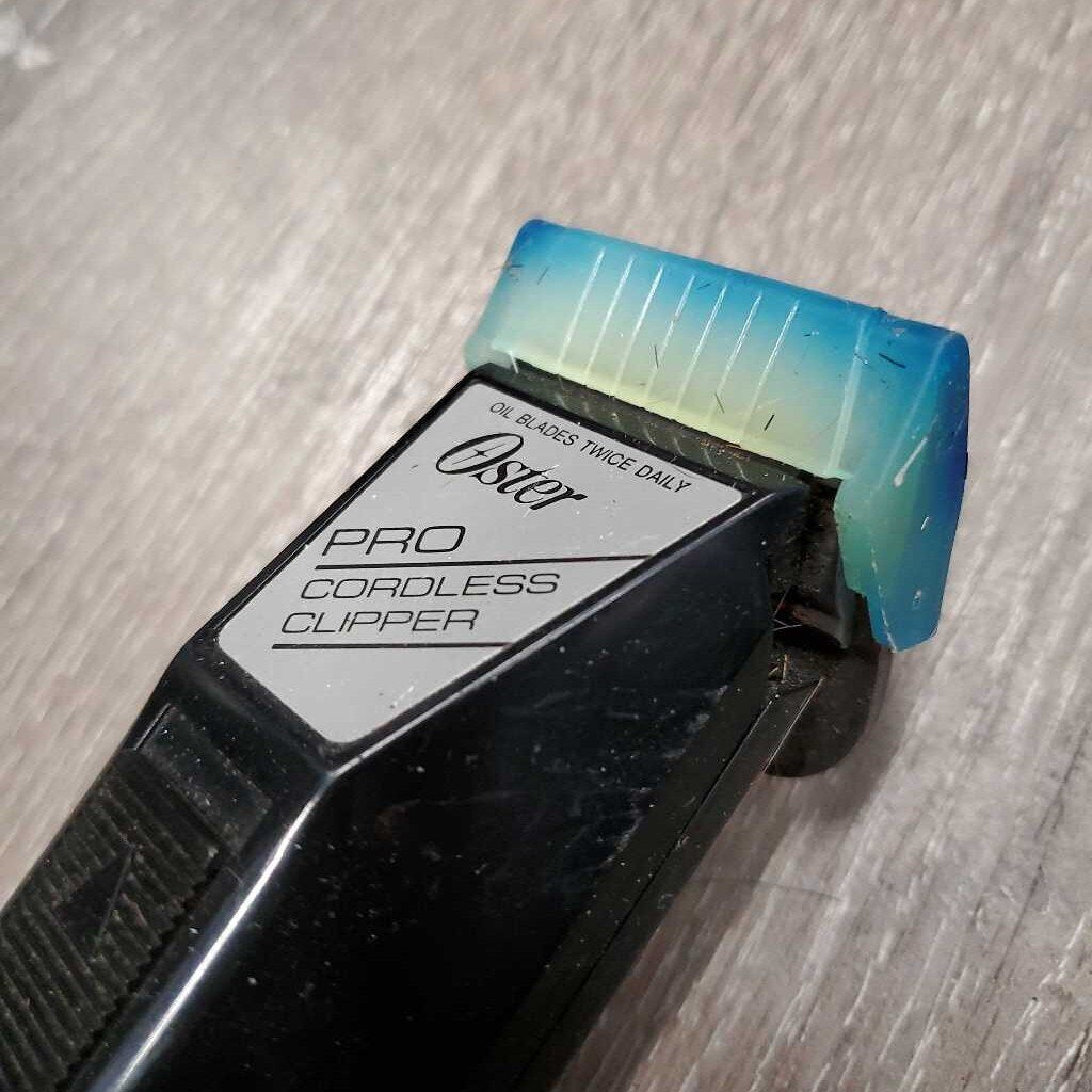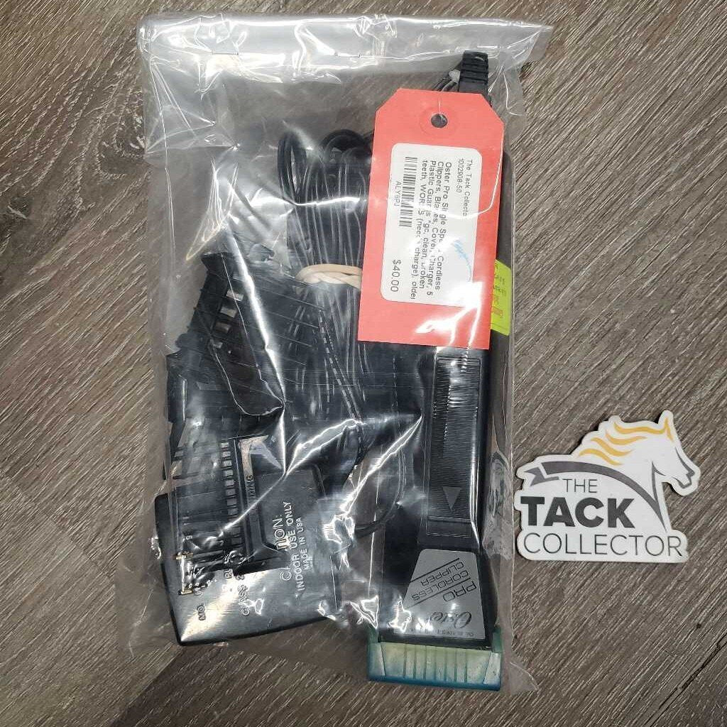 Single Speed Cordless Clippers, Blades, Cover, Charger, 5 Plastic Guards *gc, clean, broken teeth, WORKS (needs charge), older
