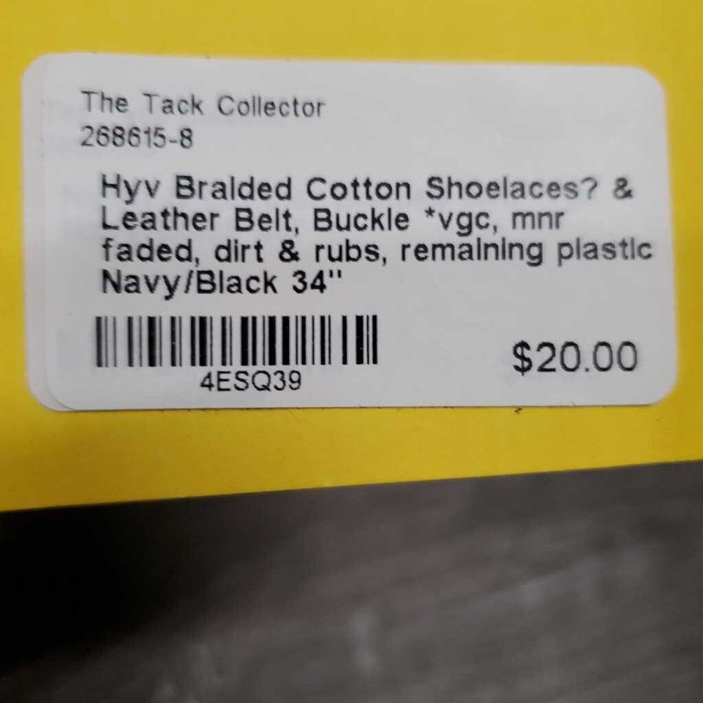 Hyv Braided Cotton Shoelaces? & Leather Belt, Buckle *vgc, mnr faded, dirt & rubs, remaining plastic