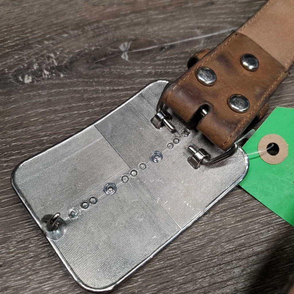 Soft Leather Belt, Square Belt Buckle *vgc, creases, stains, scratches, dents, dirt/residue, scrapes