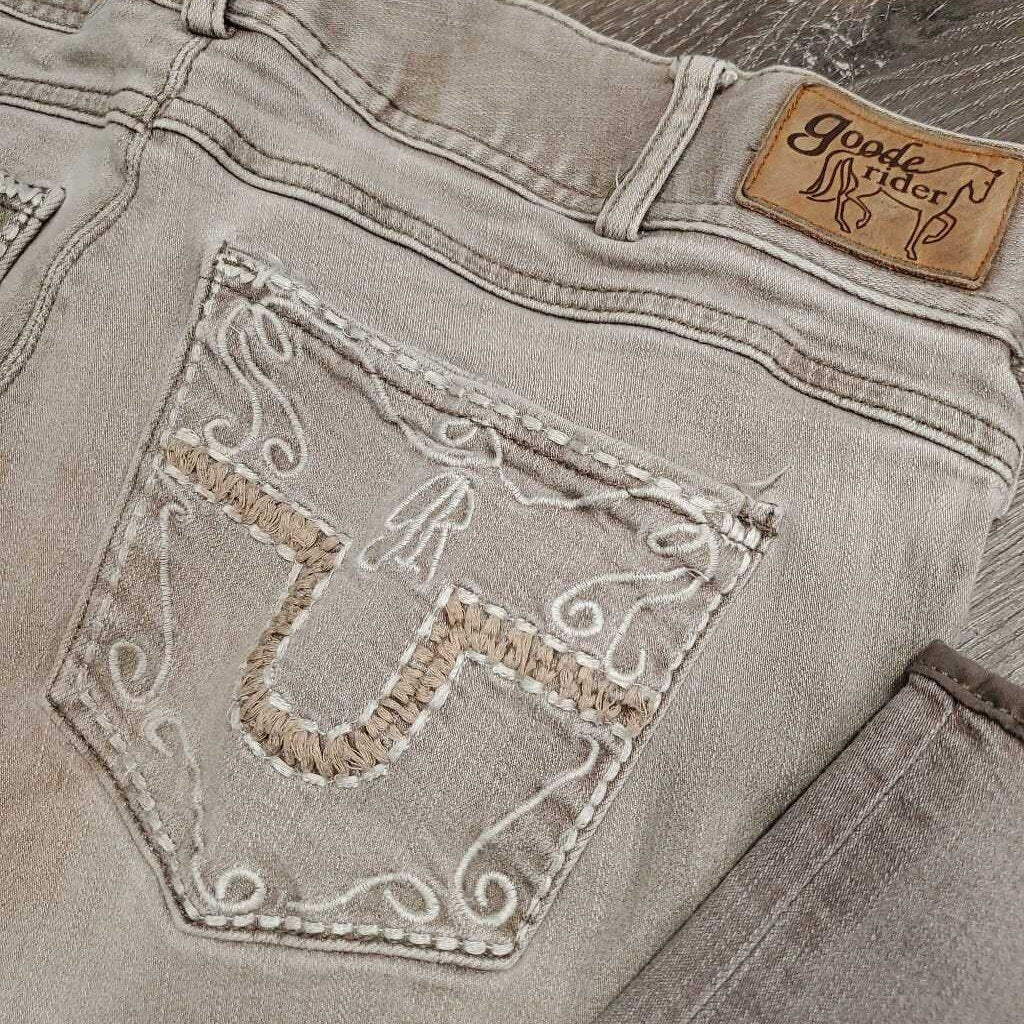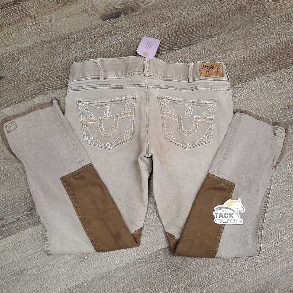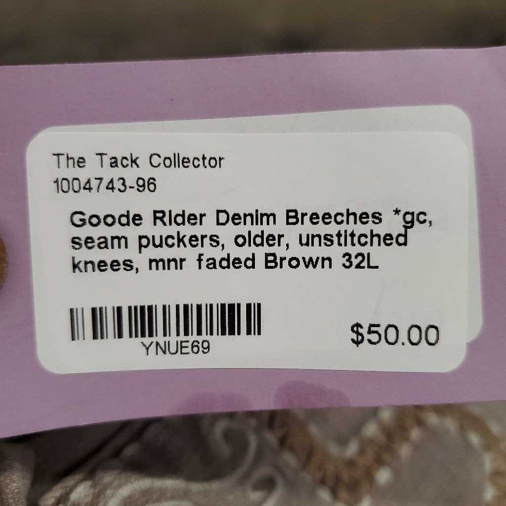 Denim Breeches *gc, seam puckers, older, unstitched knees, mnr faded