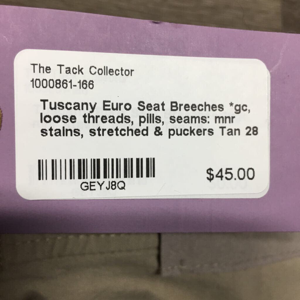 Euro Seat Breeches *gc, loose threads, pills, seams: mnr stains, stretched & puckers