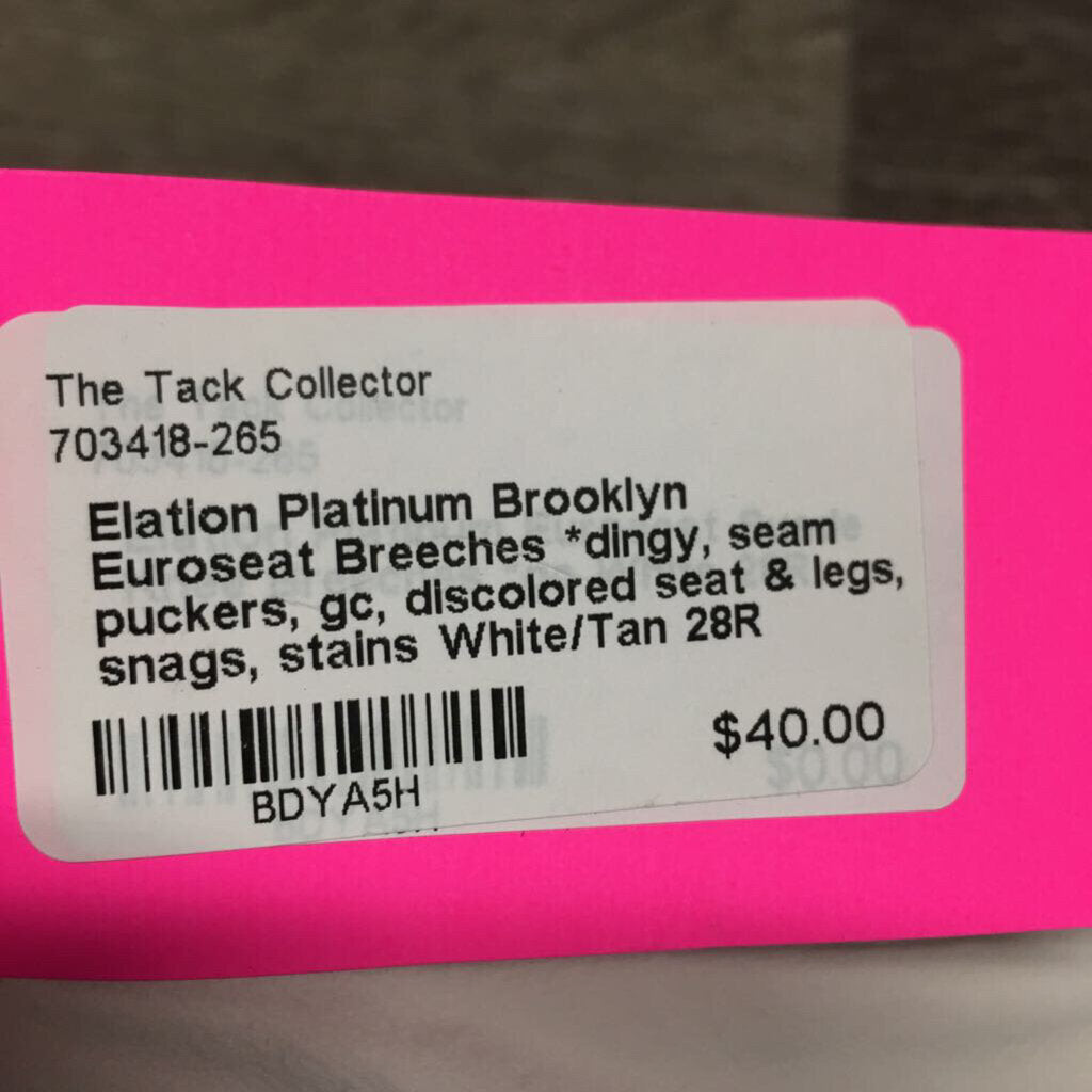 Euroseat Breeches *dingy, seam puckers, gc, discolored seat & legs, snags, stains, undone seam