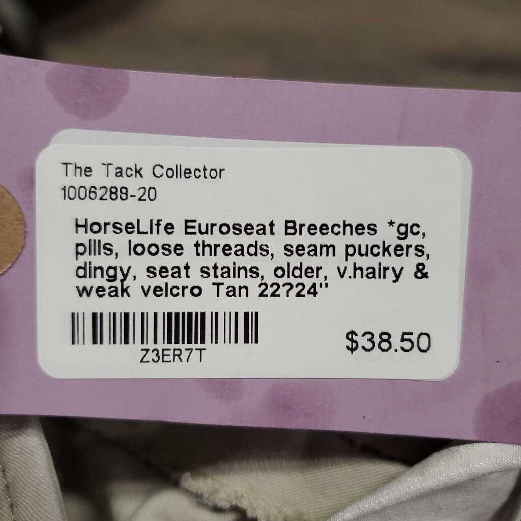 Euroseat Breeches *gc, pills, loose threads, seam puckers, dingy, seat stains, older, v.hairy & weak velcro