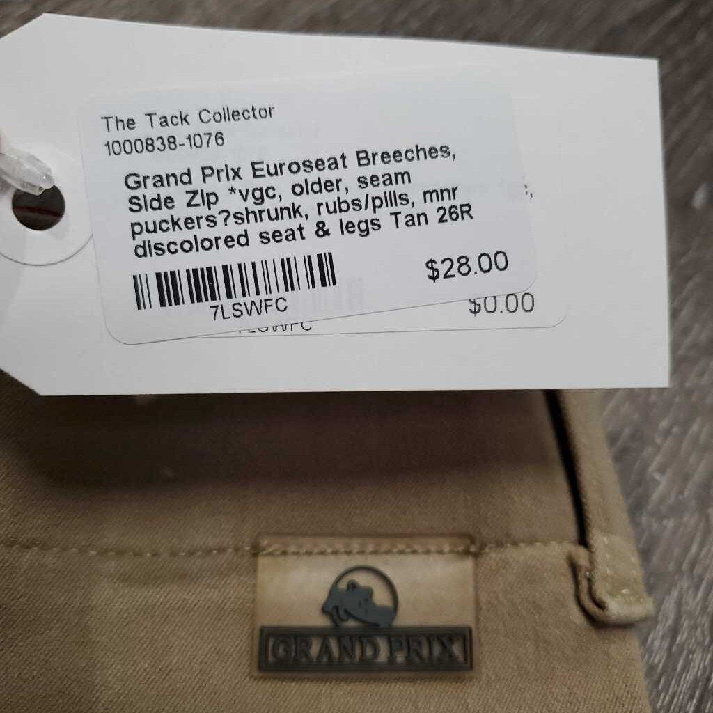 Euroseat Breeches, Side Zip *vgc, older, seam puckers?shrunk, rubs/pills, mnr discolored seat & legs