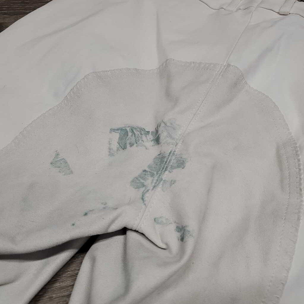 Full Seat Breeches *gc, seam puckers, older, stained seat, mnr dingy & stains