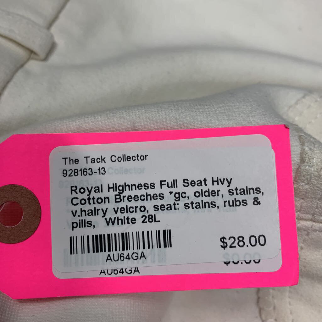 Full Seat Hvy Cotton Breeches *gc, older, stains, v.hairy velcro, seat: stains, rubs & pills