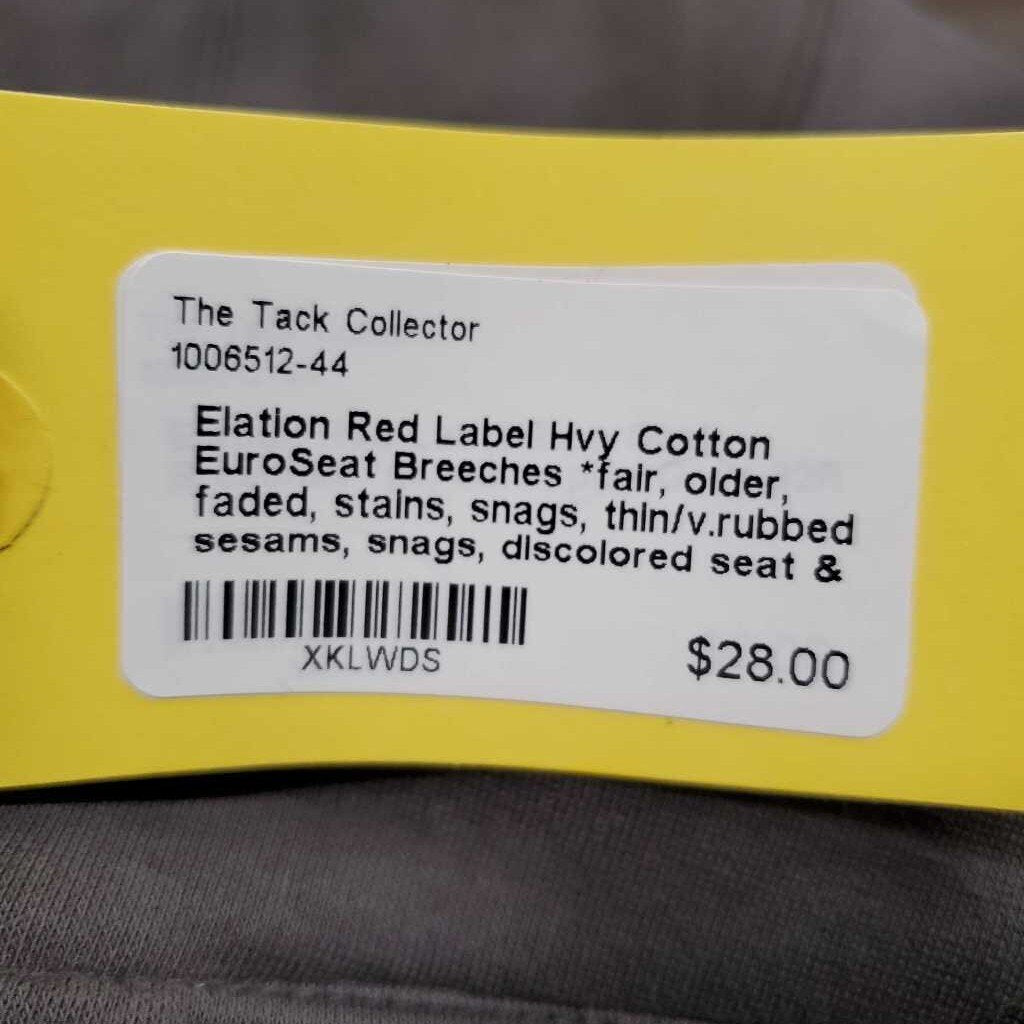 Hvy Cotton EuroSeat Breeches *fair, older, faded, stains, snags, thin/v.rubbed sesams, snags, discolored seat & legs