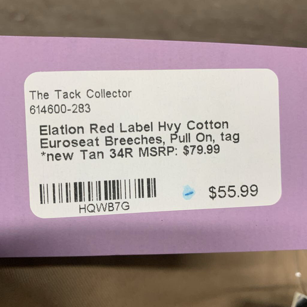 Hvy Cotton Euroseat Breeches, Pull On, tag *new