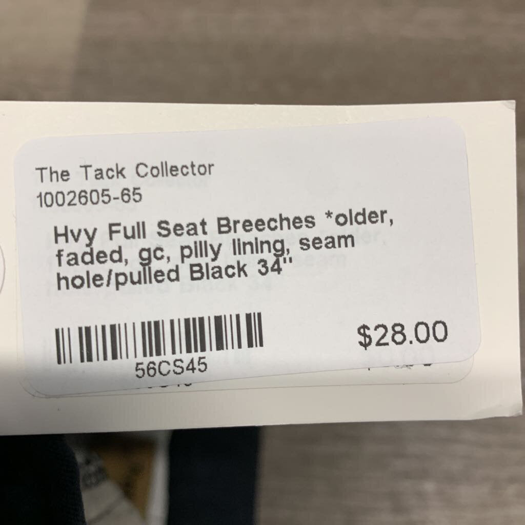 Hvy Full Seat Breeches *older, faded, gc, pilly lining, seam hole/pulled
