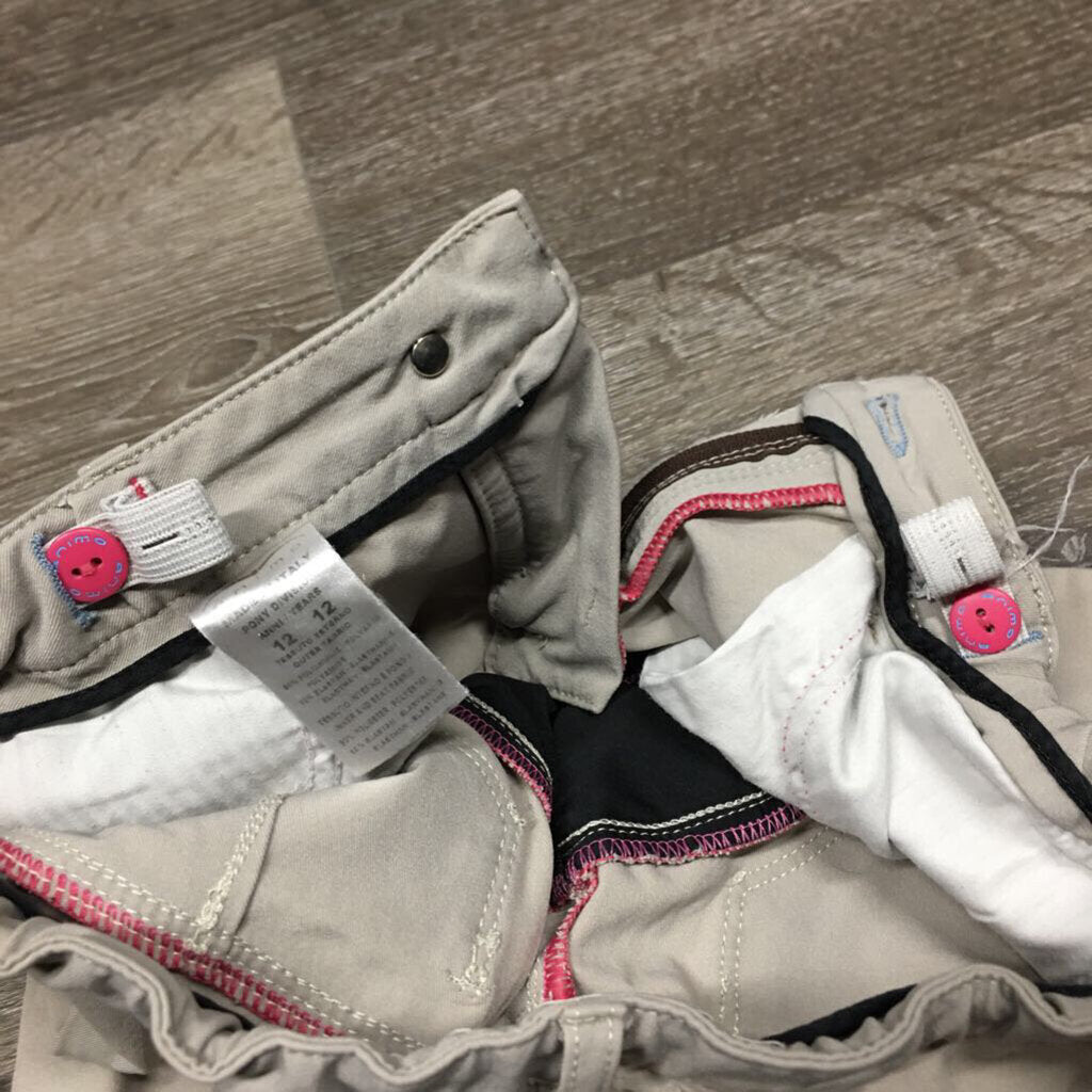 JUNIORS Euroseat Breeches, adjustable waist *gc, stains, seam puckers, stretched knees, v.stained seat & legs, peeling stickies