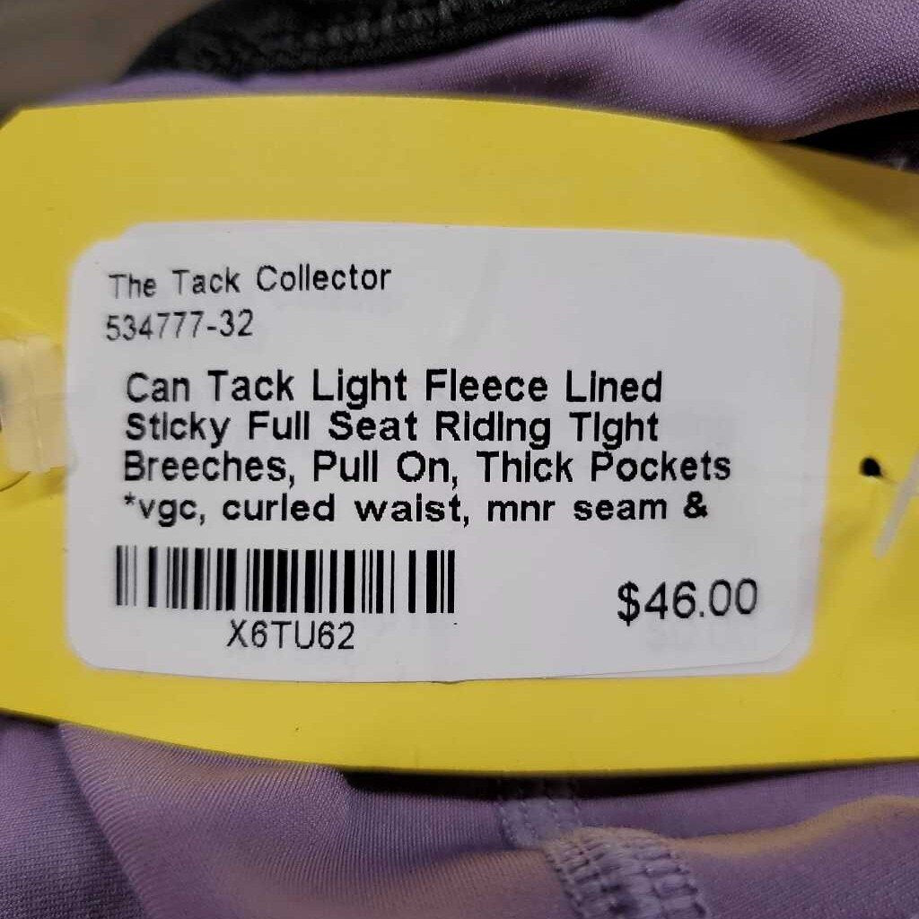 Light Fleece Lined Sticky Full Seat Riding Tight Breeches, Pull On, Thick Pockets *vgc, curled waist, mnr seam & pockets: rubs, pills & frays