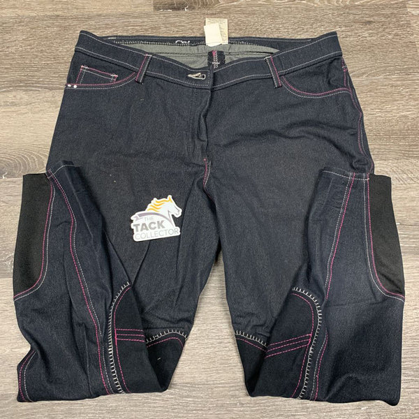 Euroseat Breeches, bling *vgc, mnr dirt?stains, thread & puckers, older Elation Denim Size: 34R