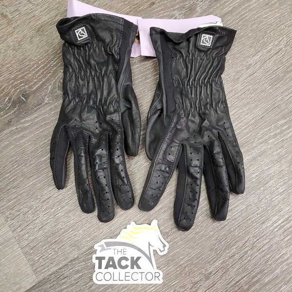 Pr Leather & Hvy Crochet Riding Gloves *gc, clean, curled, faded, snags, threads, thin spots Size: S?