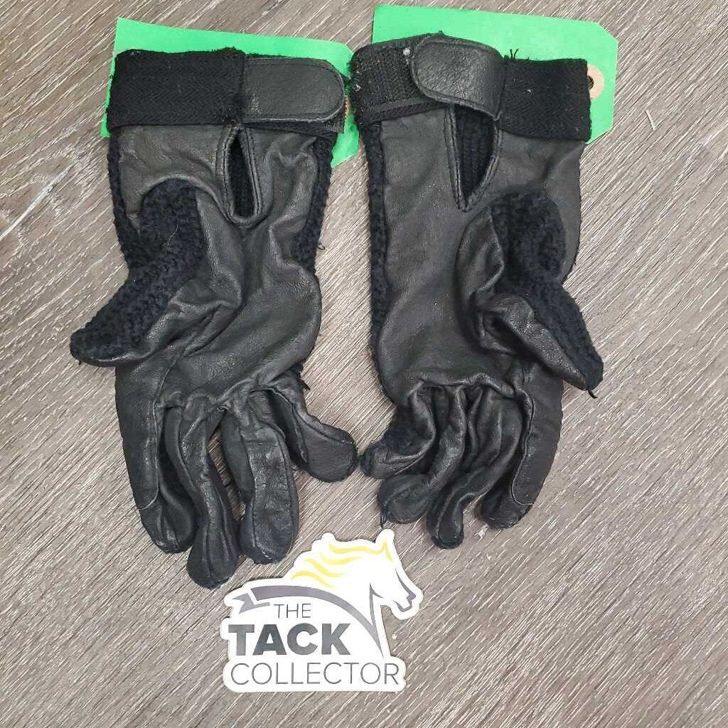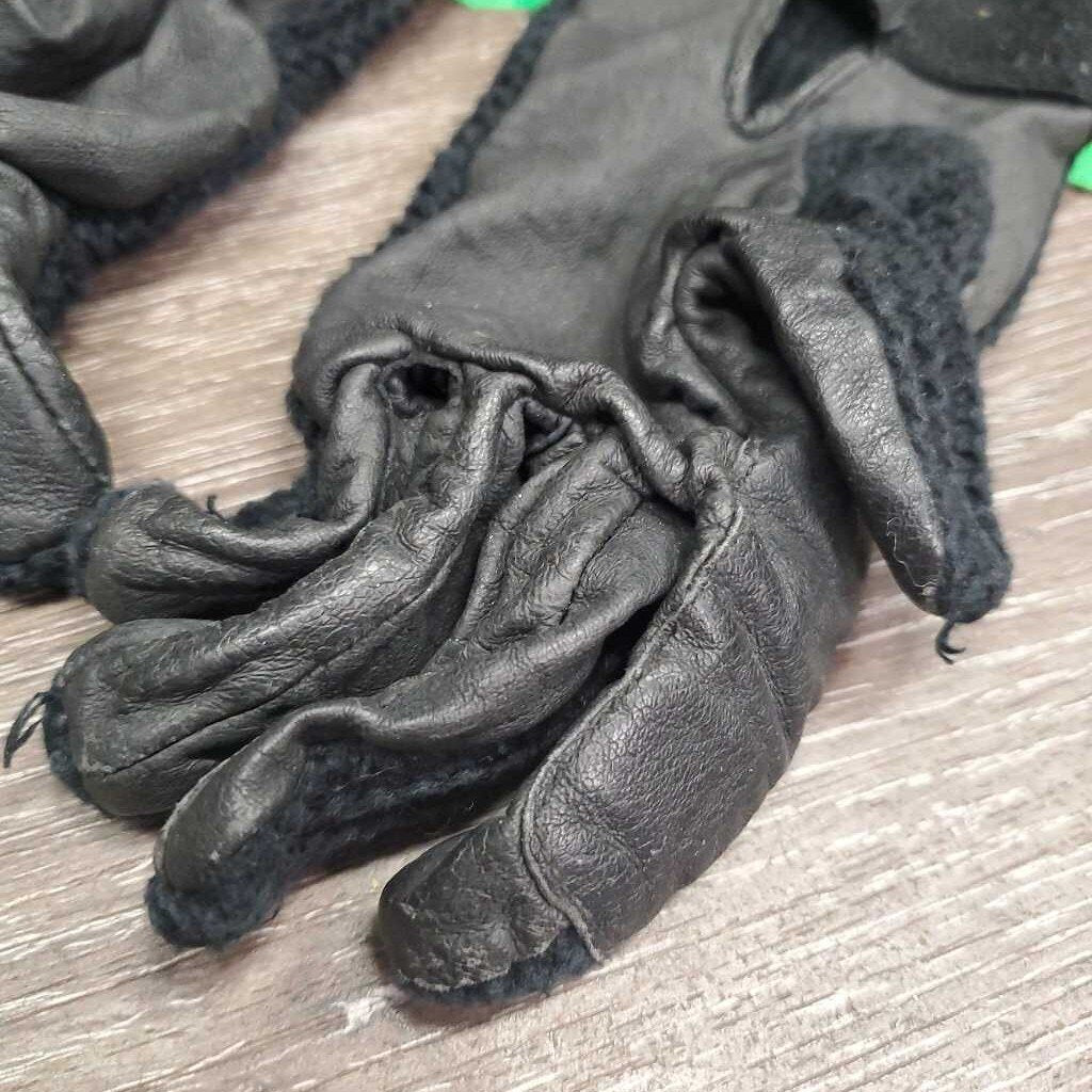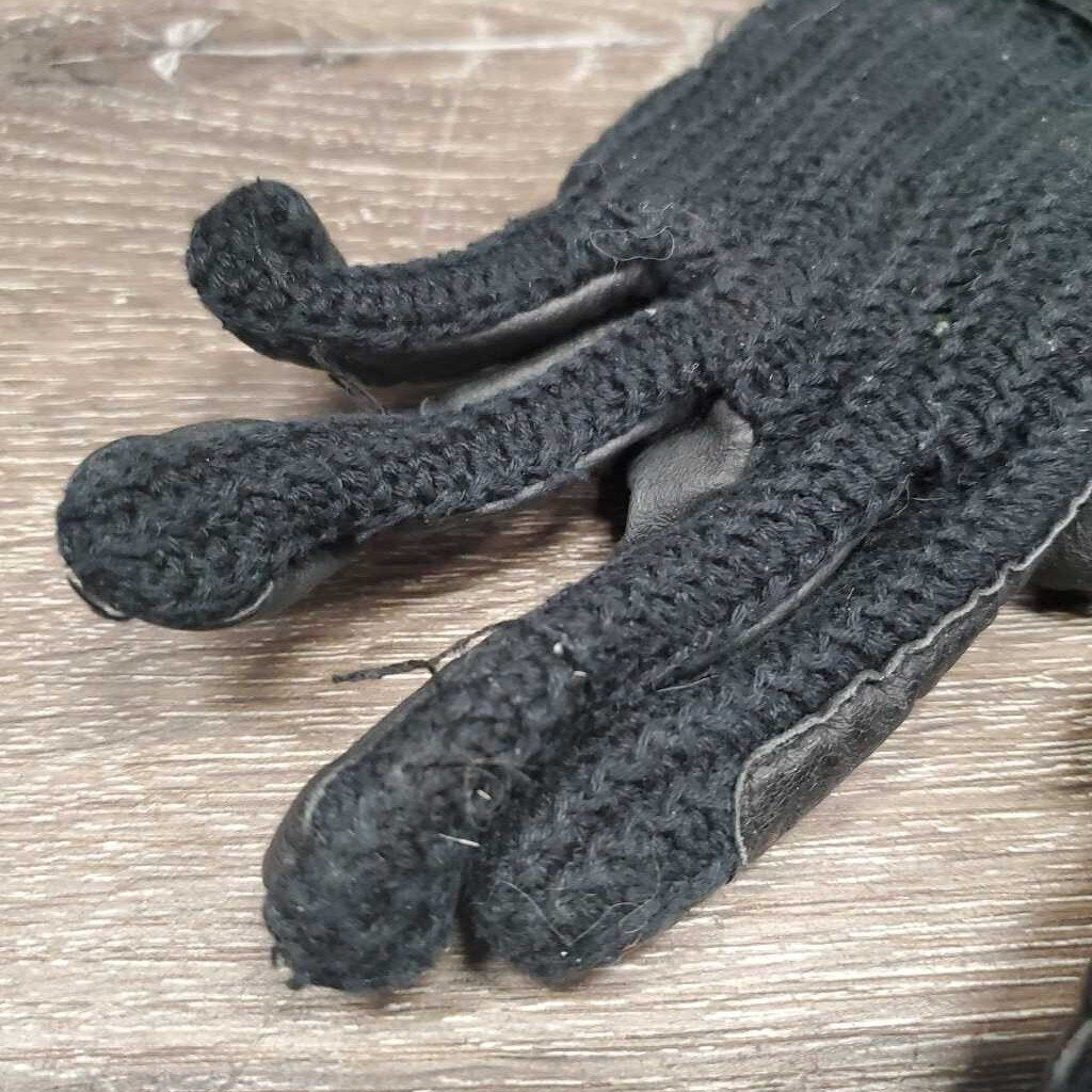 Pr Crochet & Leather Riding Gloves *gc/fair, clean, rubs, snags, threads, torn seam
