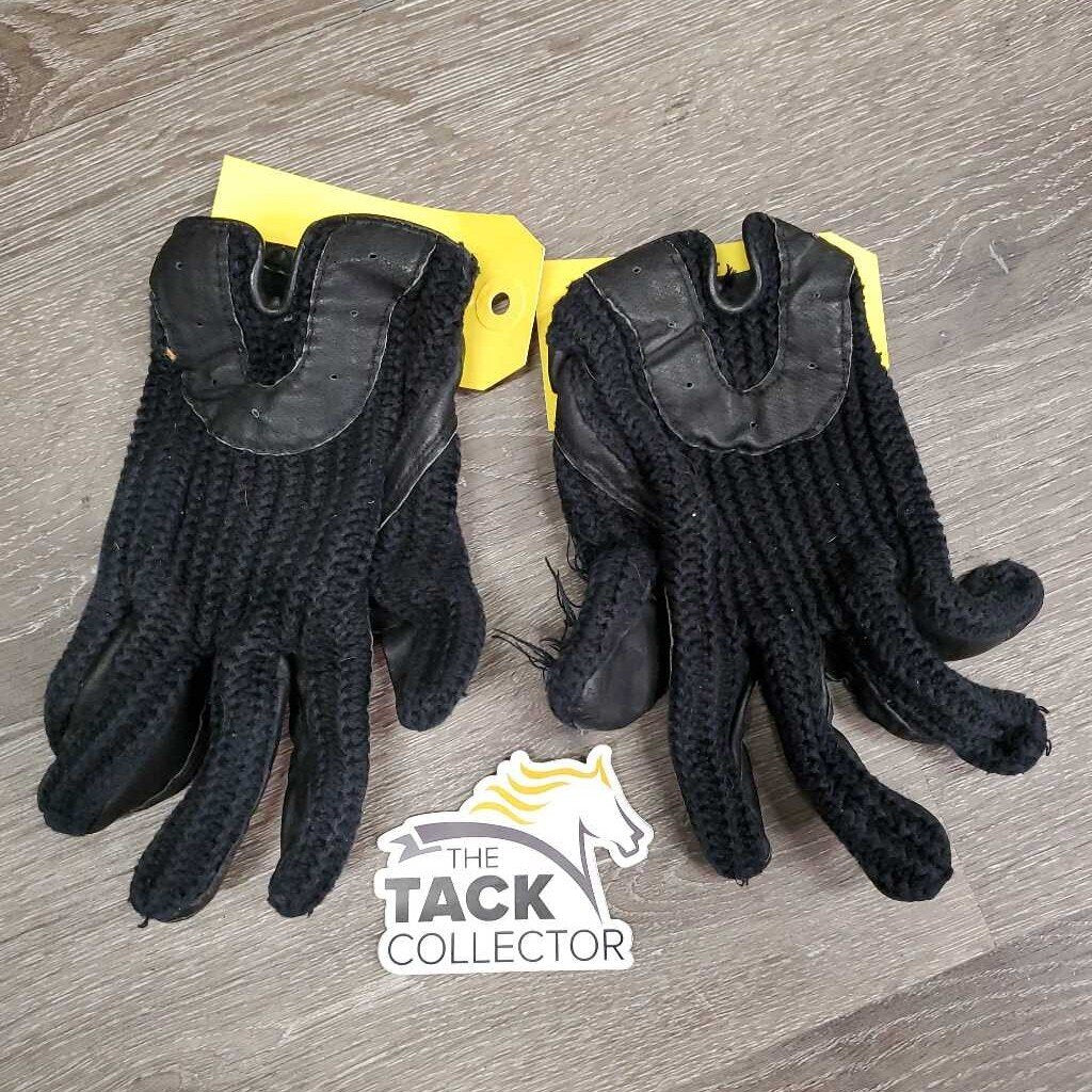 Pr Leather & Hvy Crochet Riding Gloves *gc, clean, curled, faded, snags, threads, thin spots