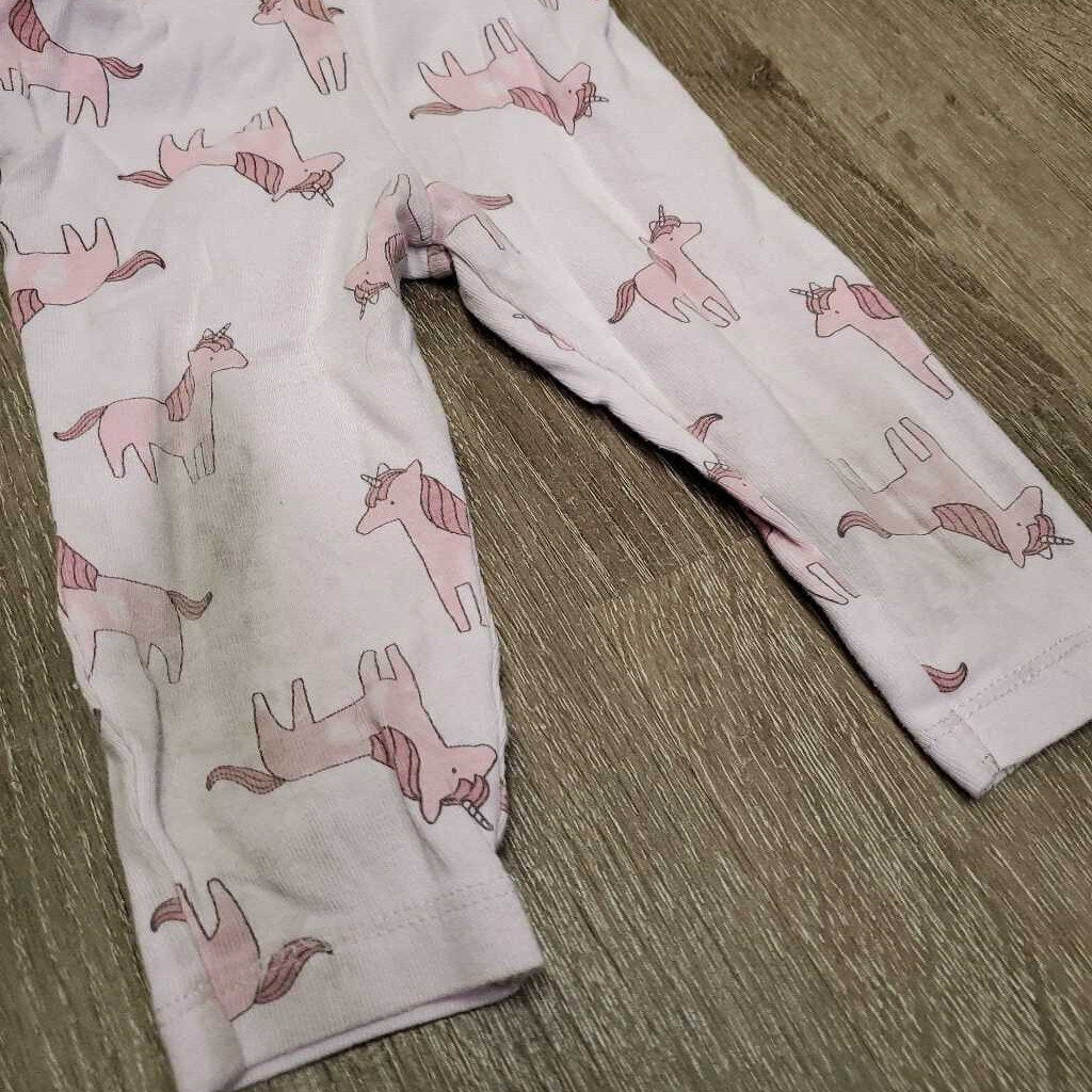BABY SS Onesie & Pants Set, unicorns *gc, fair, stained, hair