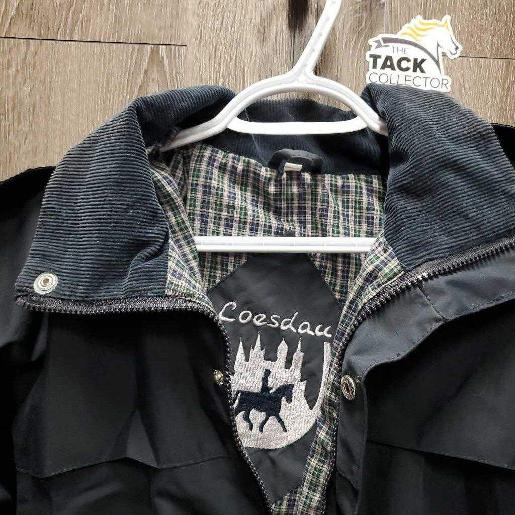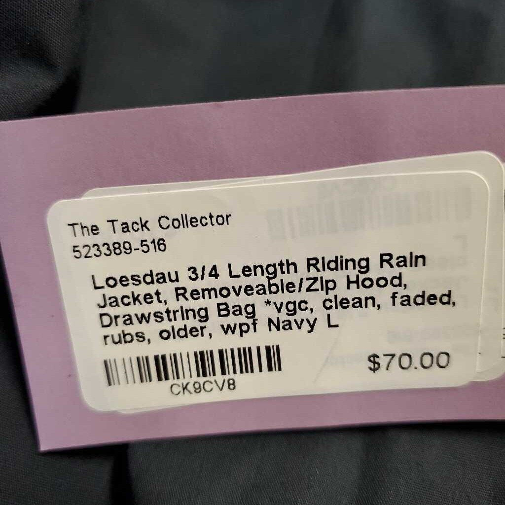3/4 Length Riding Rain Jacket, Removeable/Zip Hood, Drawstring Bag *vgc, clean, faded, rubs, older, wpf