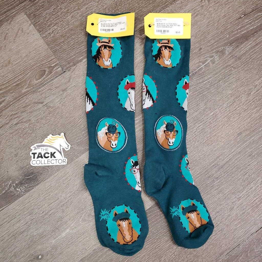Pr Tall Thick Socks, Horse Heads *vgc, clean, mnr rubs & pills