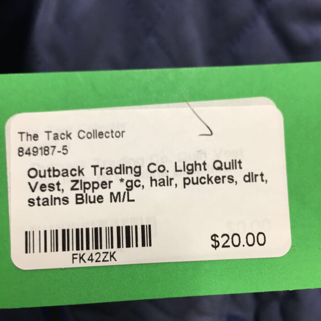 Light Quilt Vest, Zipper *gc, hair, puckers, dirt, stains