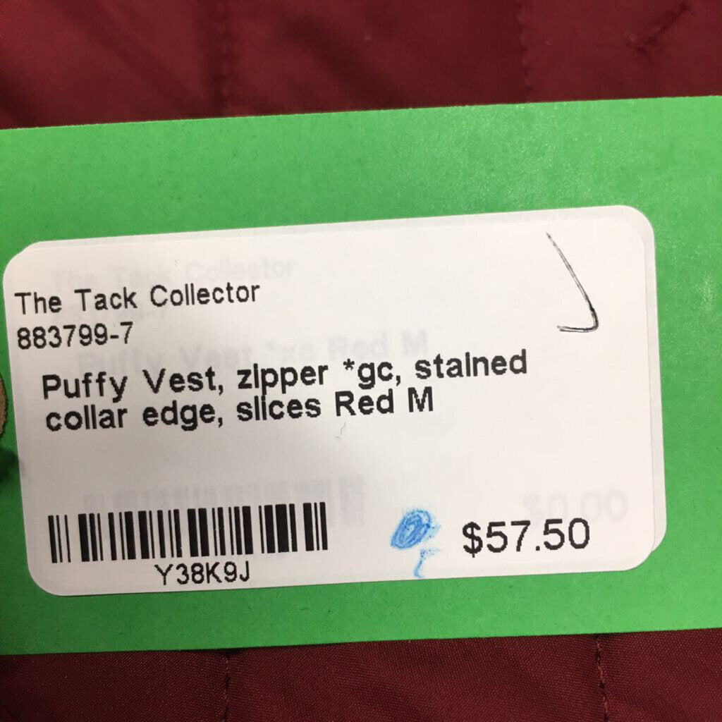Puffy Vest, zipper *gc, stained collar edge, slices