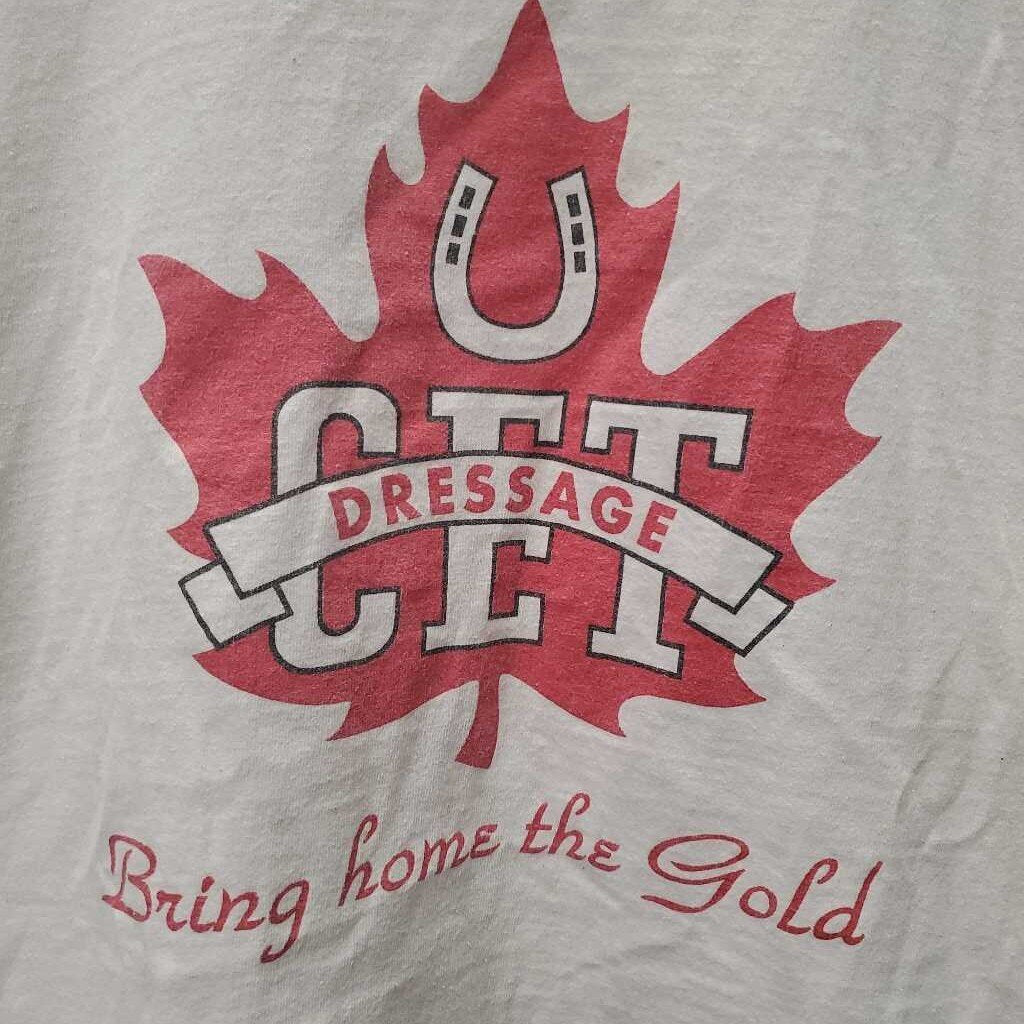 SS Crew Neck T Shirt "CET Dressage" *gc/fair, rubs, pills, pits, faded