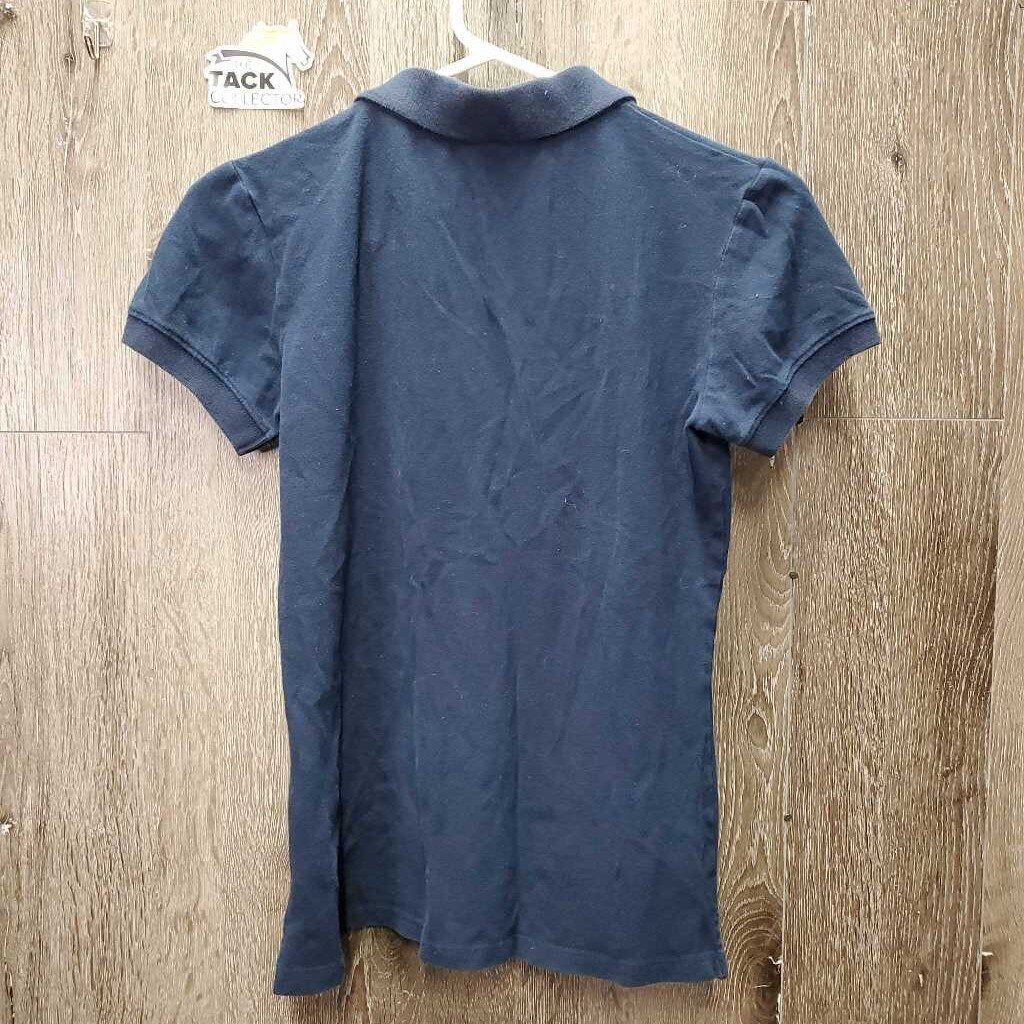 SS Polo Shirt, 1/4 button up *gc/fair, wrinkled, hair, faded, curled colar, edge rubs, stains