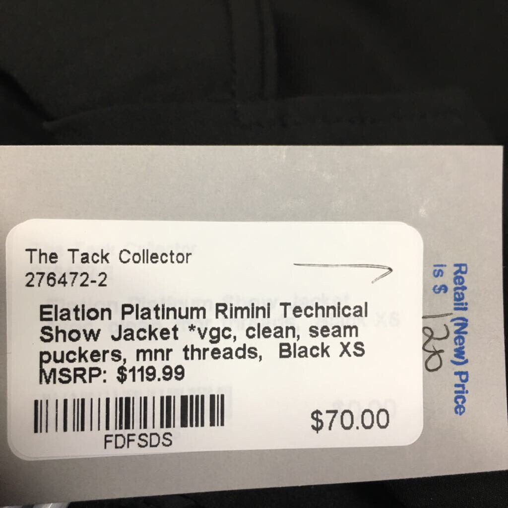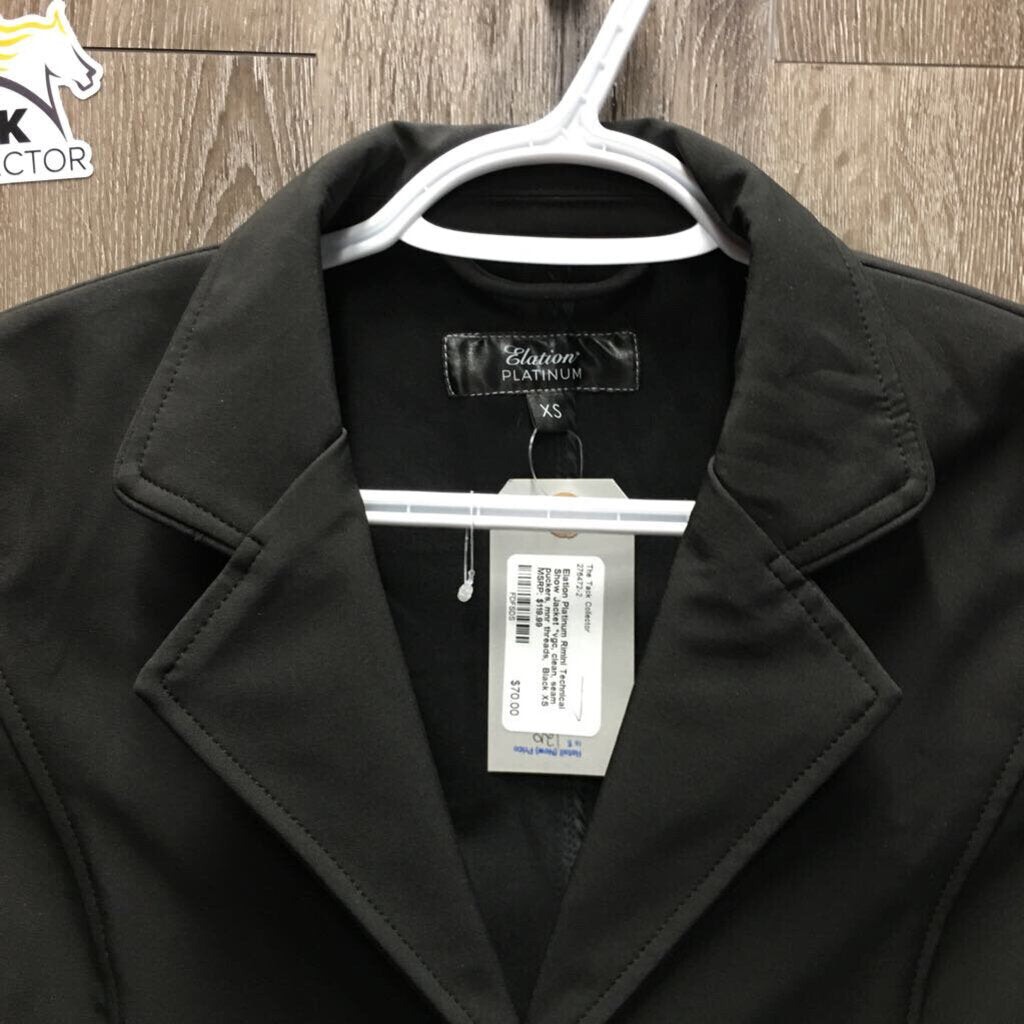 The Elation Platinum Rimini Show Jacket offers a classic, and elegant piece for the competition ring. Made from a lightweight, stretch softshell material for full range of motion and comfort in and out of the saddle. Features an unlined finish to help eliminate bulk, and a waterproof, and breathable construction. Complete with a back vent, zippered pockets, and a 3-button closure. Lightweight, stretch softshell Unlined Waterproof and breathable Back vent Zippered pockets 3-button closure Materials & Care 85% Polyester, 3% Spandex, 12% PO Machine washable.