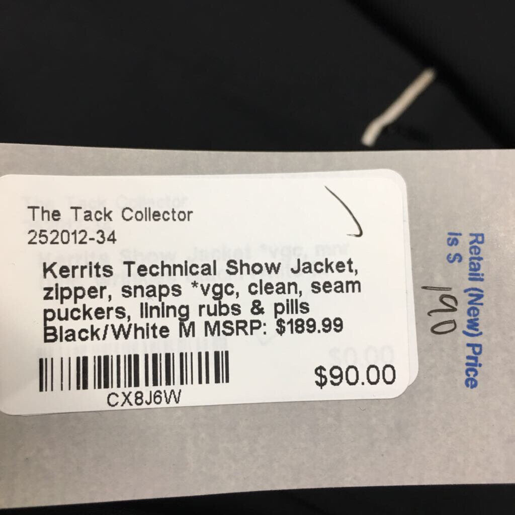 Technical Show Jacket, zipper, snaps *vgc, clean, seam puckers, lining rubs & pills