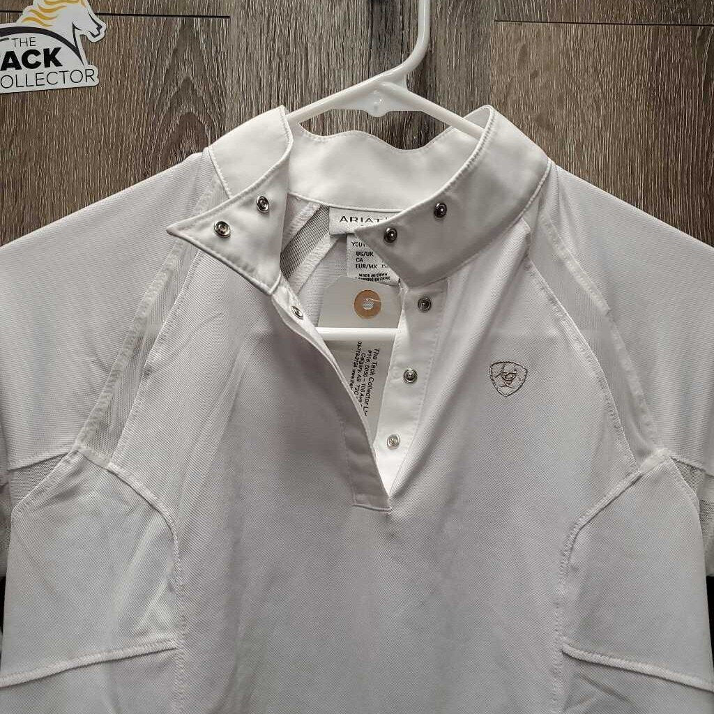 JUNIORS LS Sun Show Shirt, 1/4 Snap Up, snap collar, mesh sleeves *vgc/xc, mnr seam puckers