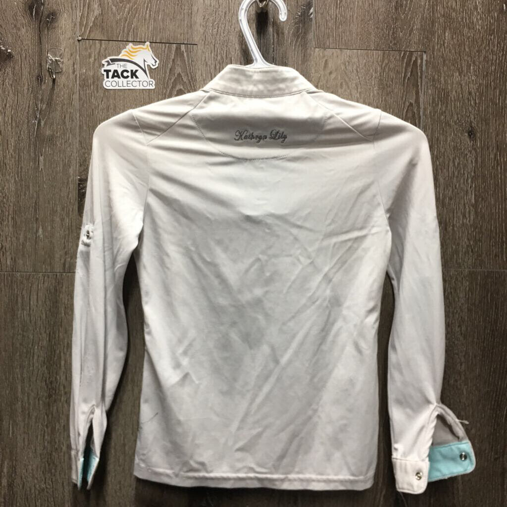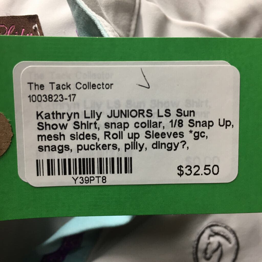 JUNIORS LS Sun Show Shirt, snap collar, 1/8 Snap Up, mesh sides, Roll up Sleeves *gc, snags, puckers, pilly, dingy?, threads