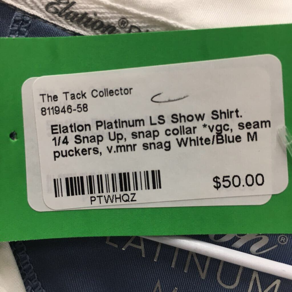 LS Show Shirt. 1/4 Snap Up, snap collar *vgc, seam puckers, v.mnr snag
