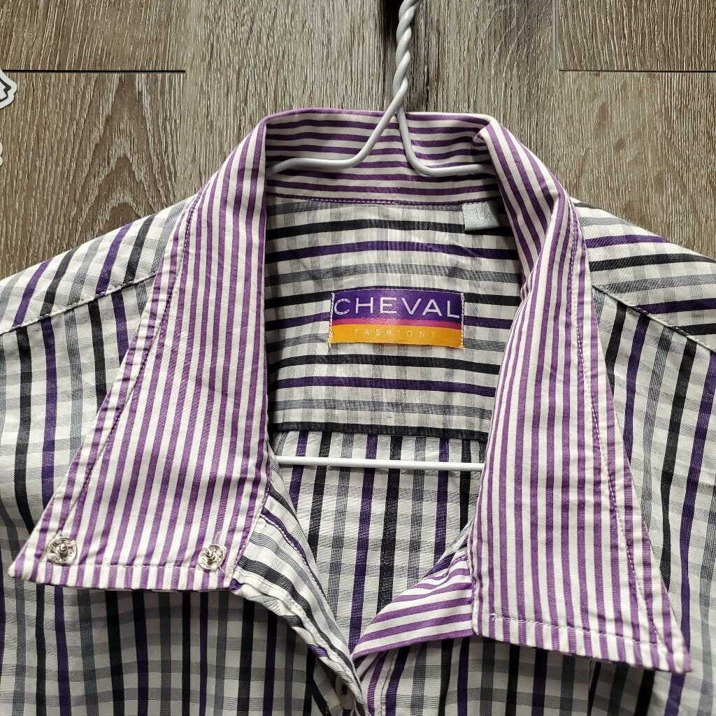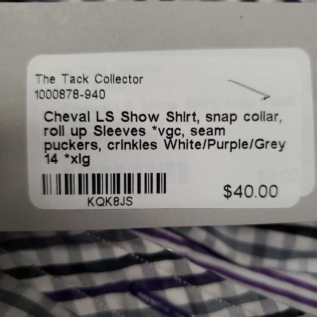 LS Show Shirt, snap collar, roll up Sleeves *vgc, seam puckers, crinkles