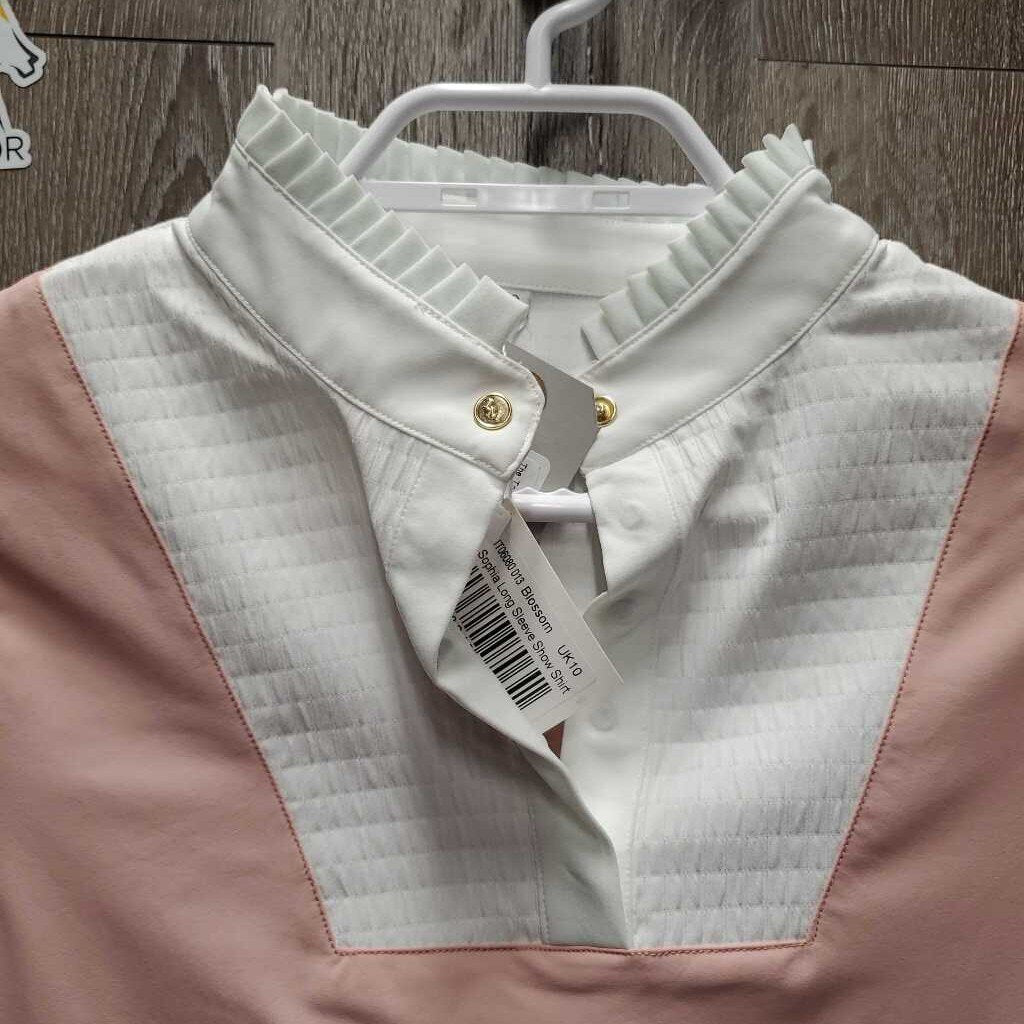 Achieve peak presentation for your best performance yet in this elegant show shirt. The technical performance fabric, with a breathable area under the sleeve, will keep you cool and comfortable as you ride. A textured bib front adds sophistication. The beautiful neck detailing stands out from the crowd, with a pretty pleated collar detailing, finished with an invisible magnet placket. There are loops on the side to secure your stock.