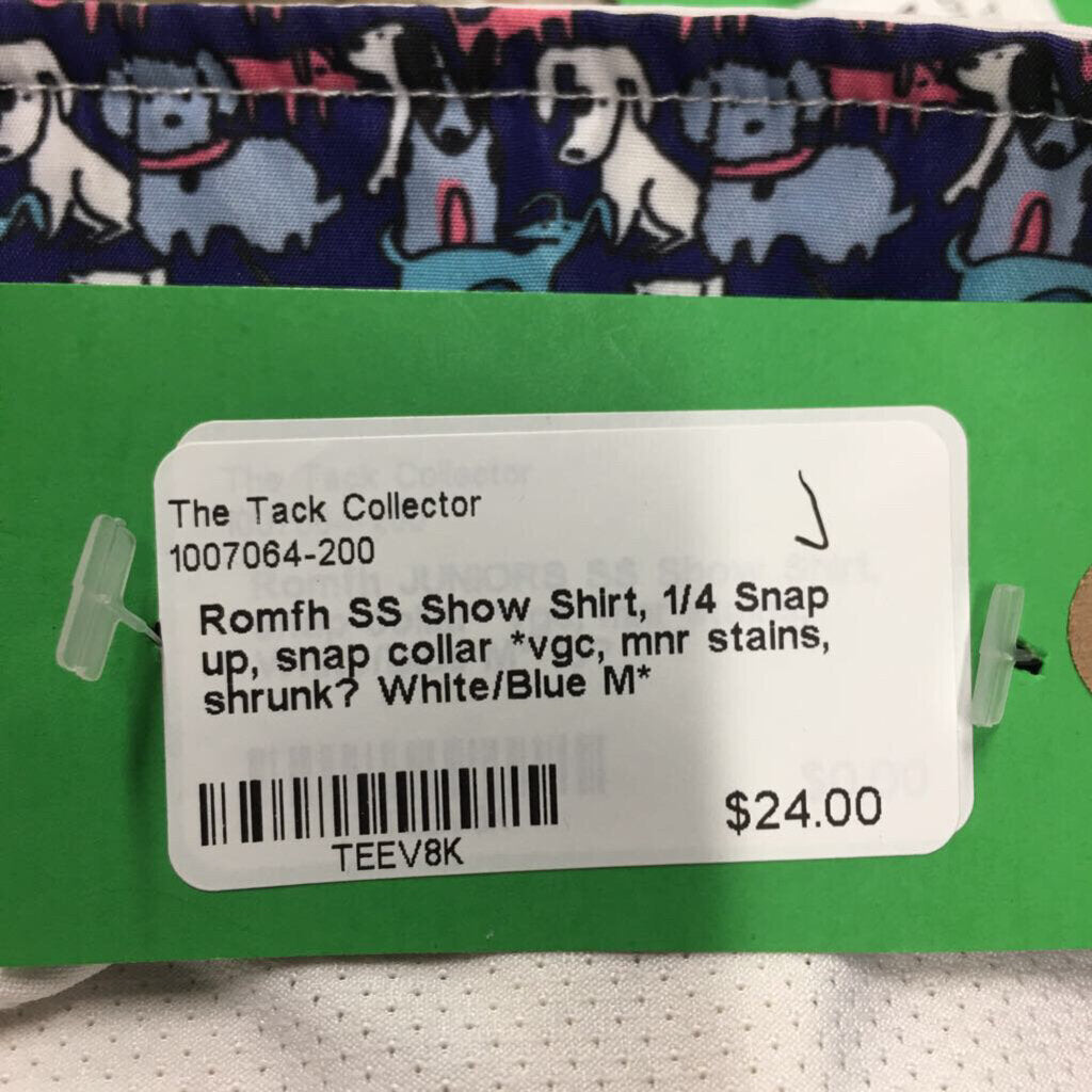 SS Show Shirt, 1/4 Snap up, snap collar *vgc, mnr stains, shrunk?