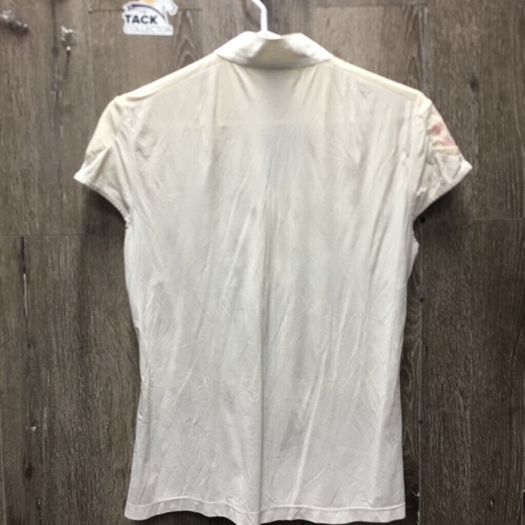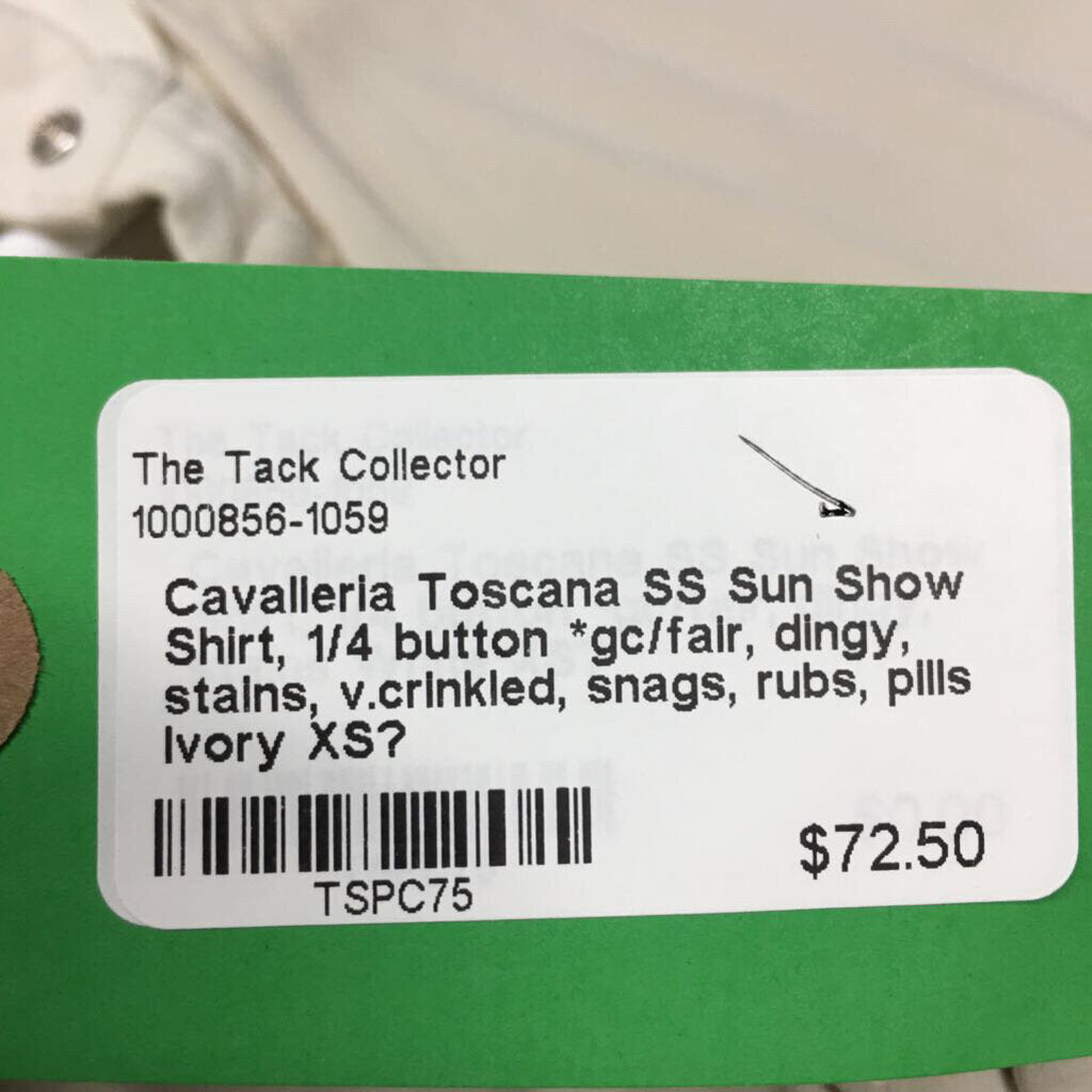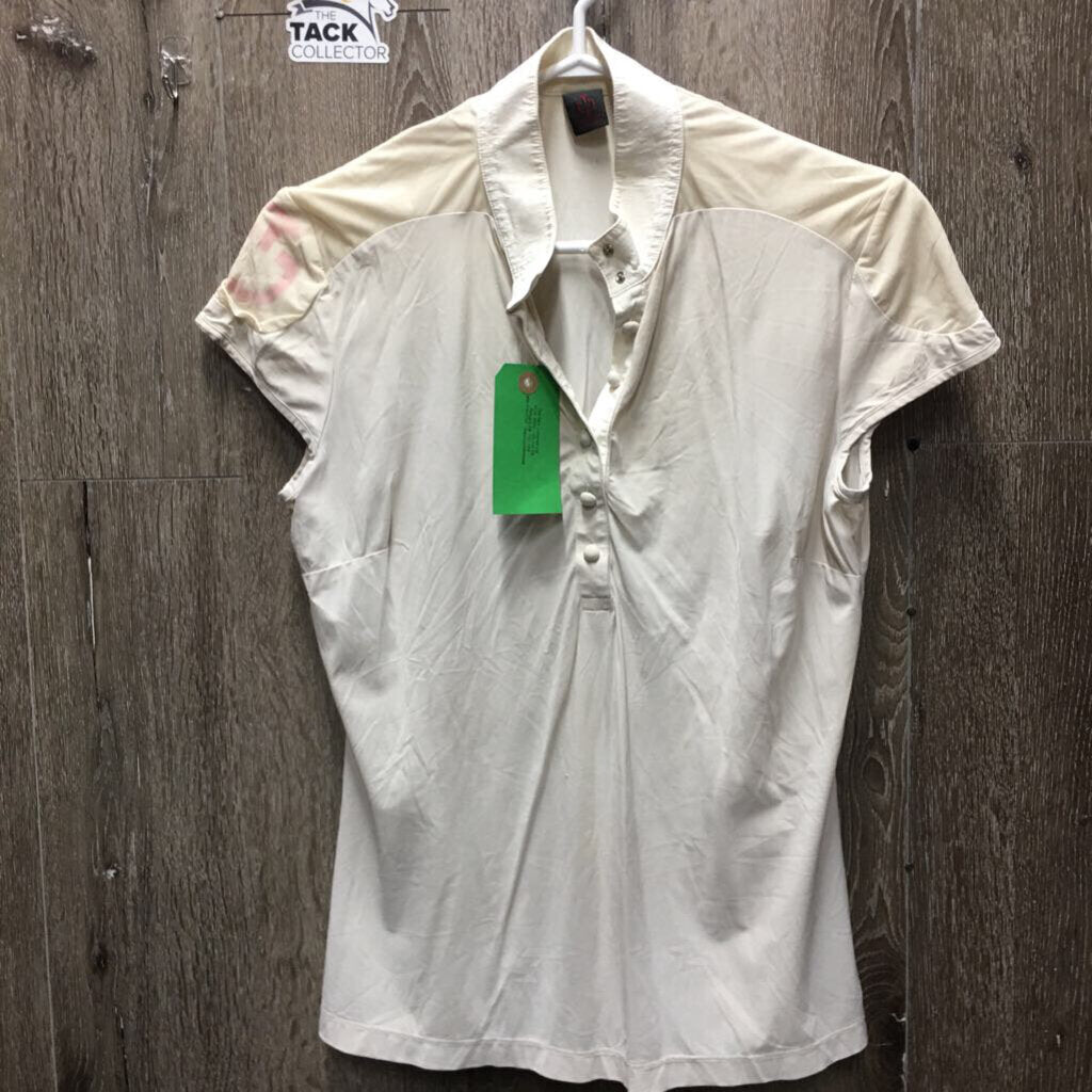 SS Sun Show Shirt, 1/4 button *gc/fair, dingy, stains, v.crinkled, snags, rubs, pills