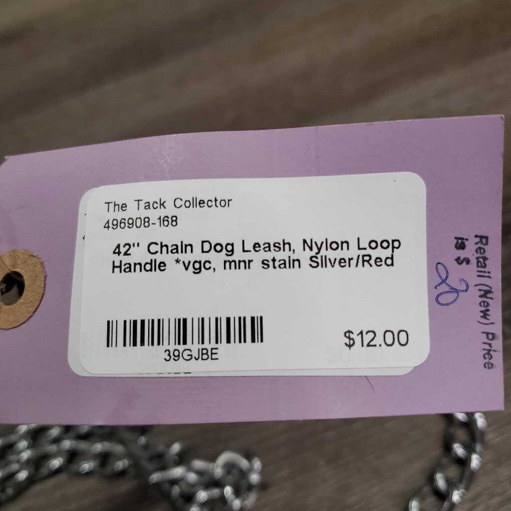 42" Chain Dog Leash, Nylon Loop Handle *vgc, mnr stain