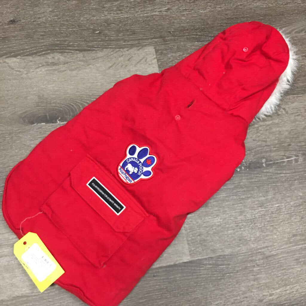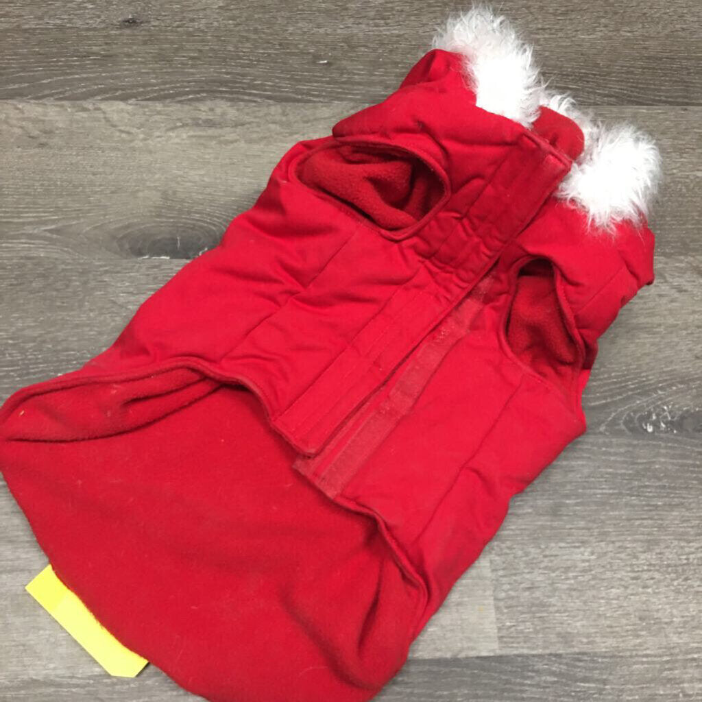"North Pole" Winter Dog Coat, Hood, Fleece Trim *vgc, clean, hair, ?loose lining - curled edge