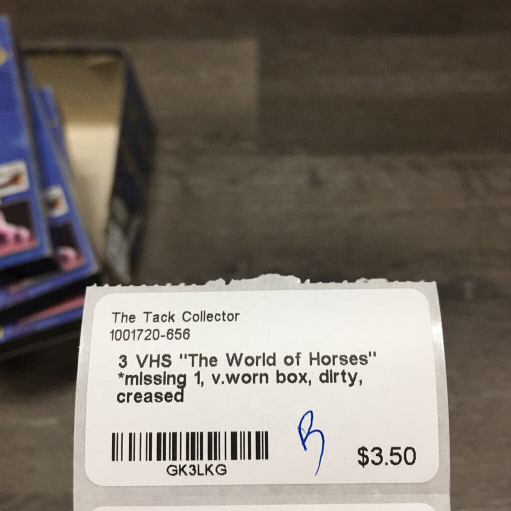 3 VHS "The World of Horses" *missing 1, v.worn box, dirty, creased