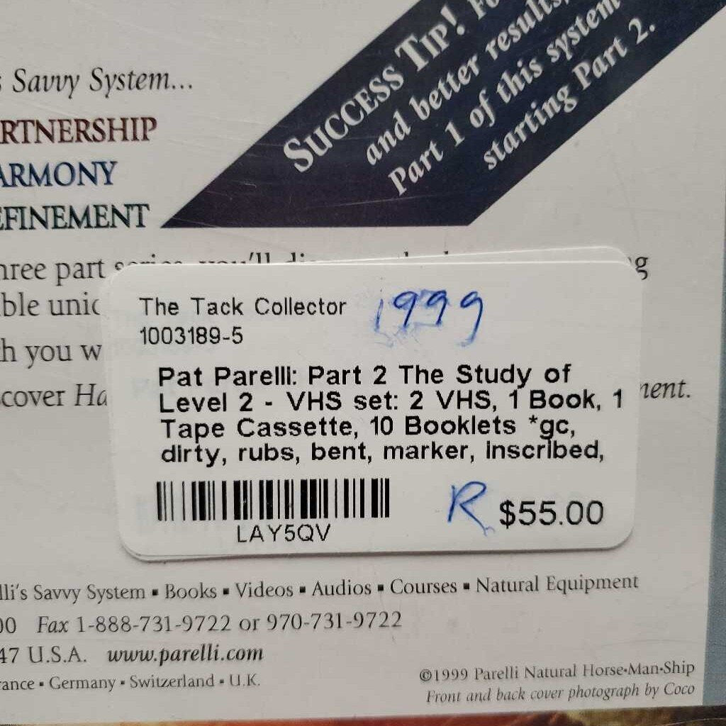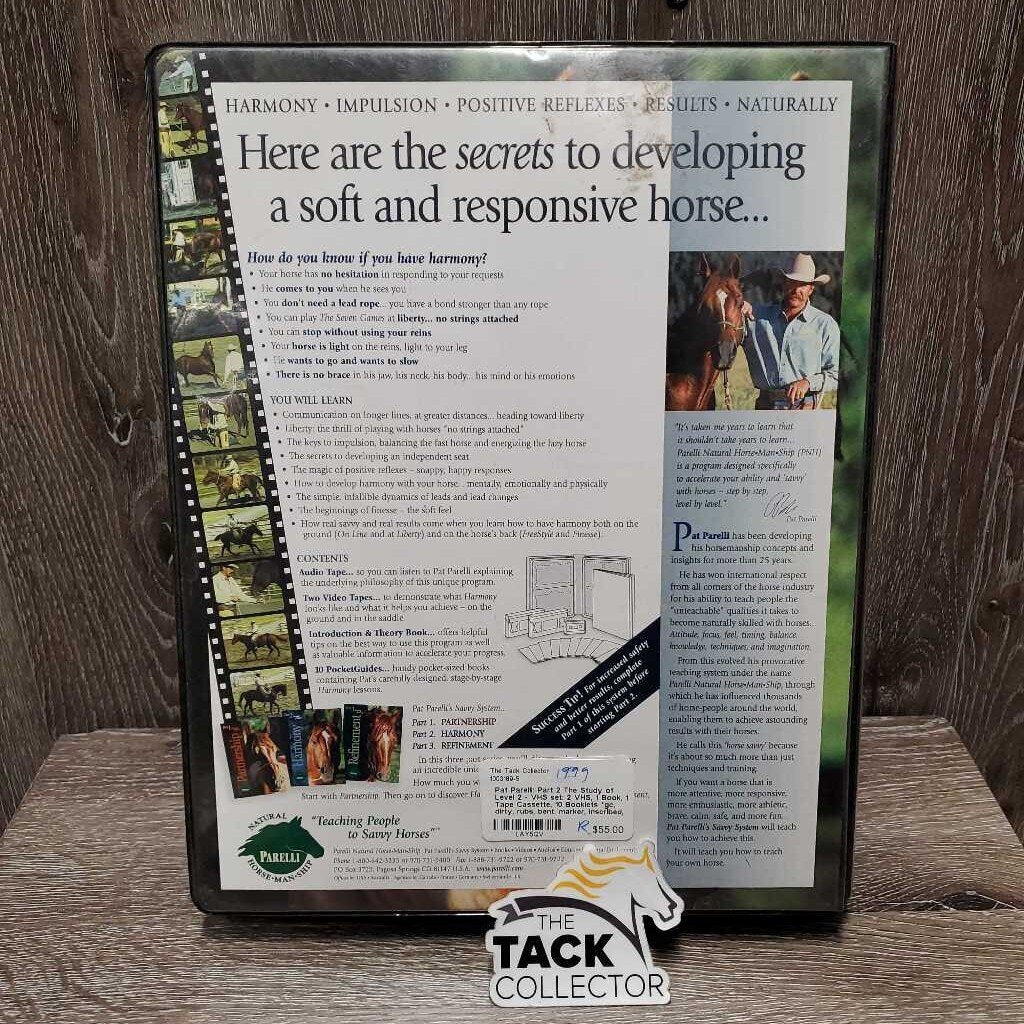 Pat Parelli: Part 2 The Study of Level 2 - VHS set: 2 VHS, 1 Book, 1 Tape Cassette, 10 Booklets *gc, dirty, rubs, bent, marker, inscribed, split case