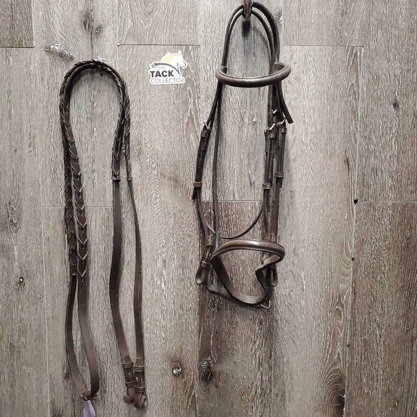 Rsd Leather Bridle Wide Braided Reins *vgc/gc, clean, edge scrapes, dry, stiff, chews, scrapes, mnr undone stitching, faded Size: H $40.00