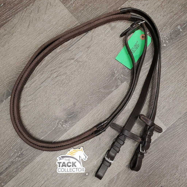 Soft Narrow Rubber Lined Reins, finger stoppers *vgc, mnr threads, clean PS Of Sweden